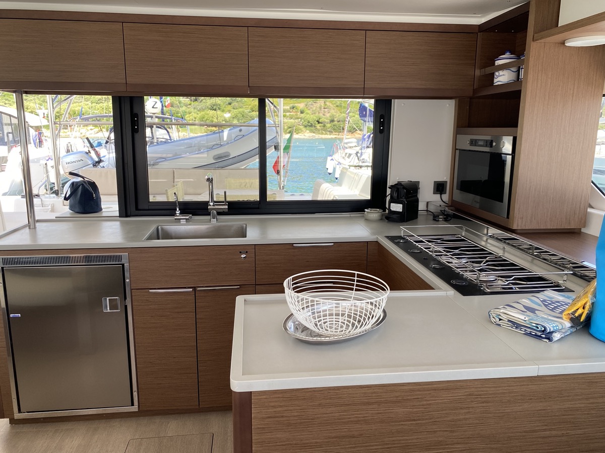 Cockpit-Kissen, Lautsprecher im Cockpit, Kaffeemaschine, Generator, Teak Cockpit, Kühlschrank, Bimini, Elektrische Toilette, Klimaanlage, Wassermacher