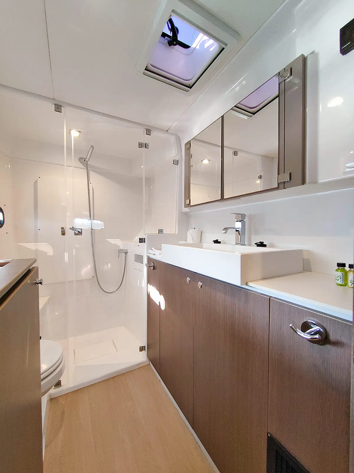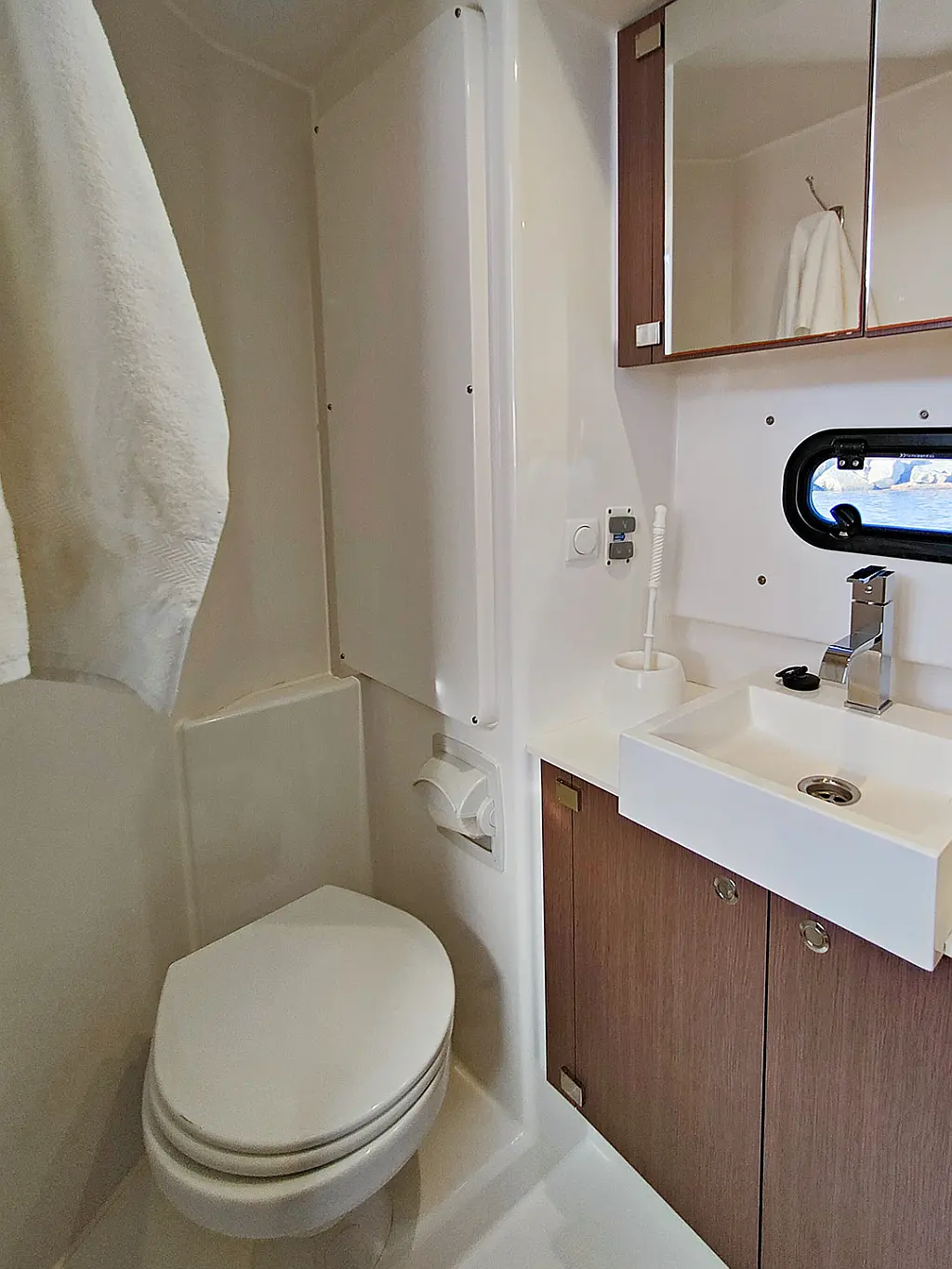 Heating, Bimini, Coffee maker, Refrigerator, Electric winches, Solar Panels, Electric toilet, Cockpit speakers