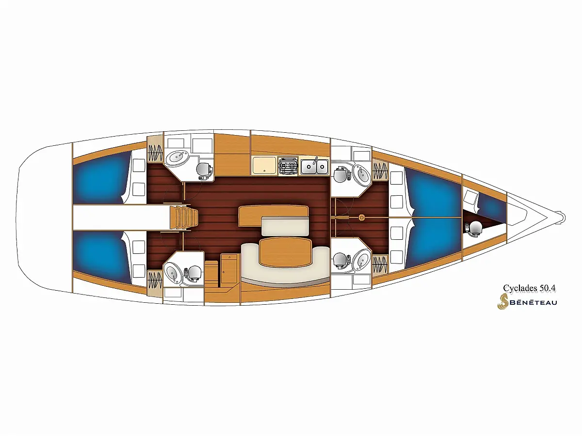 Bimini, Cockpit cushions, Dinghy, Outboard engine, Air condition, Wi-Fi & Internet, Generator, Refrigerator