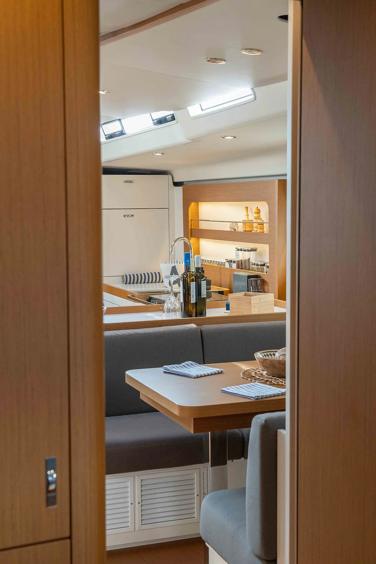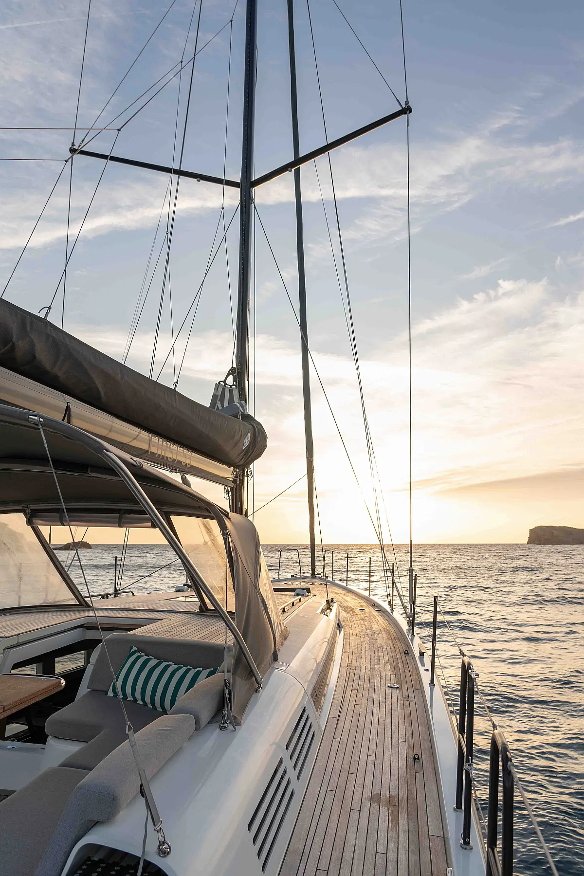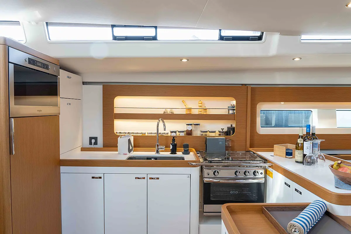 Teak deck, Generator, Water maker, Air condition, Sprayhood, Bimini, Swimming platform, Electric toilet, Cockpit cushions, Refrigerator, Inverter, Dinghy