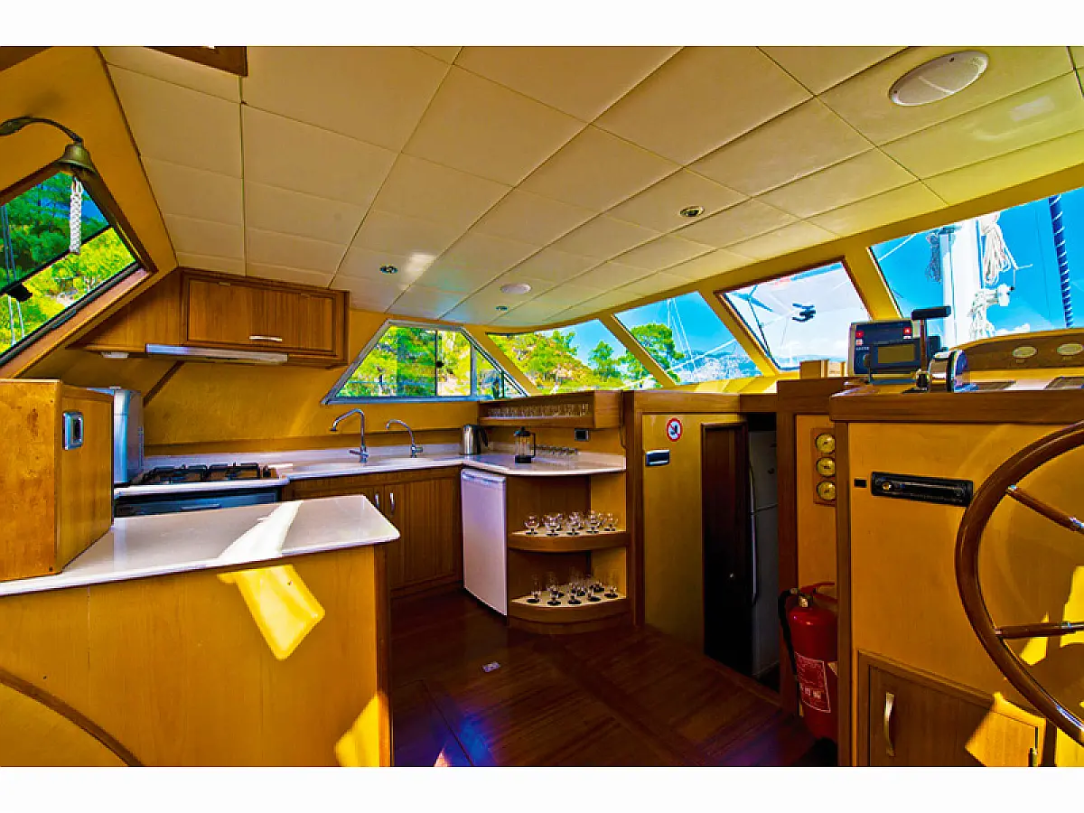 Solar Panels, Dinghy, Cockpit cushions, Coffee maker, Air condition, Generator, Electric toilet, Refrigerator, Teak deck