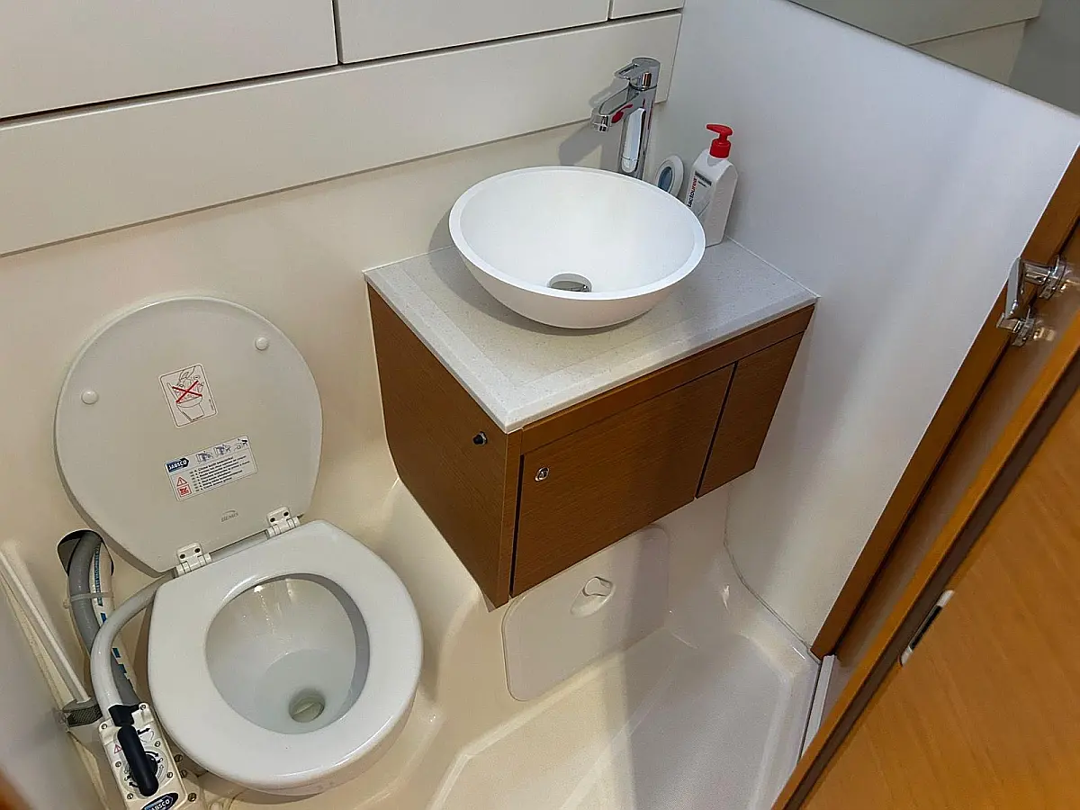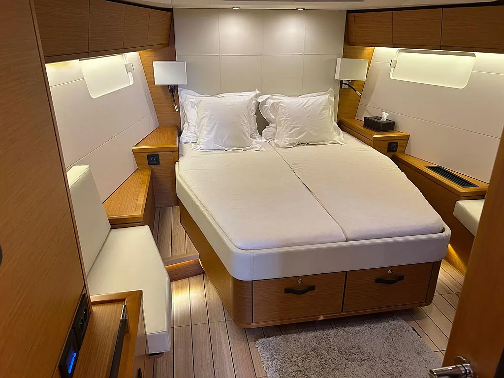 Cockpit speakers, Bimini, Swimming platform, Teak deck, Solar Panels, Air condition, Dinghy, Heating, Coffee maker, Outboard engine
