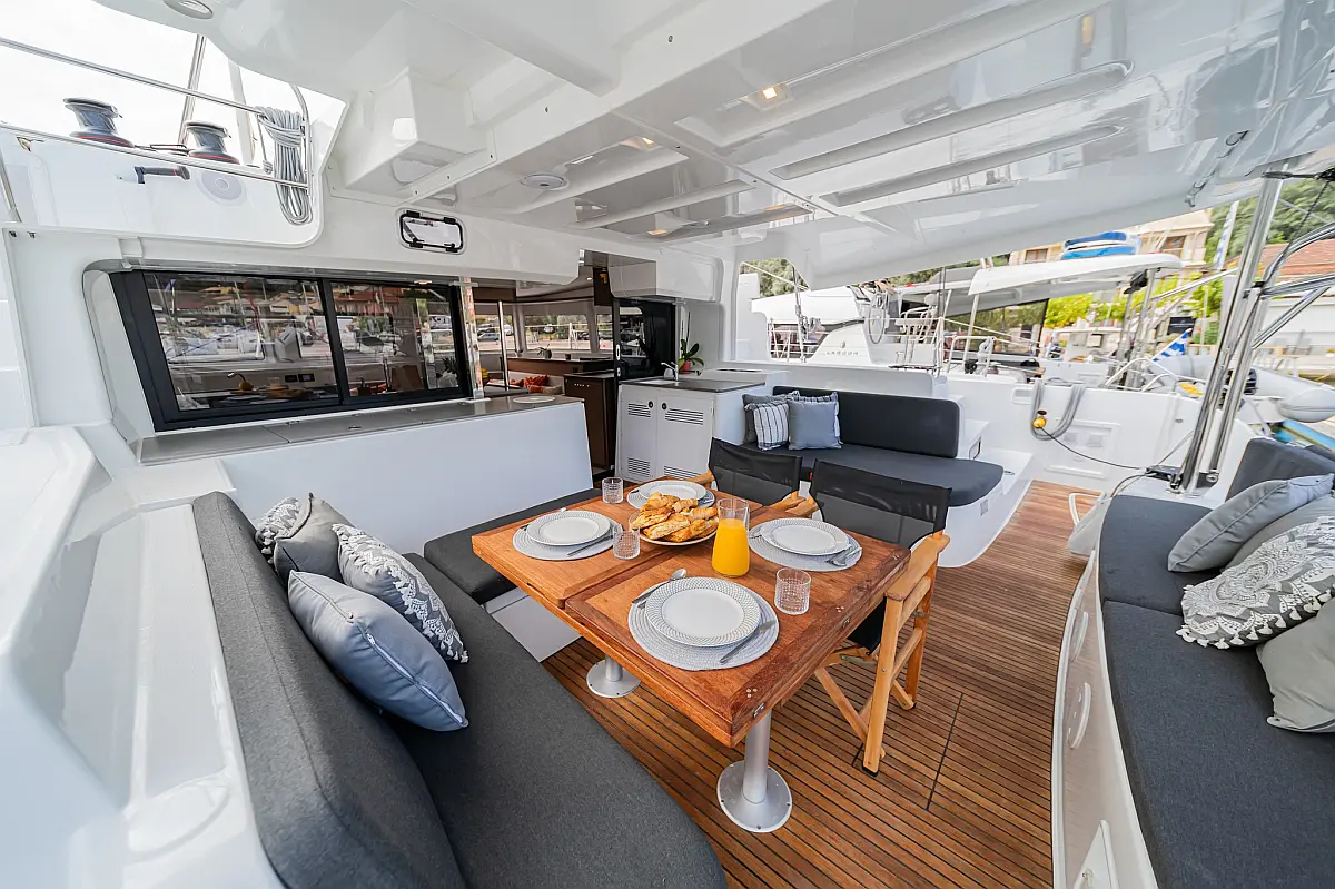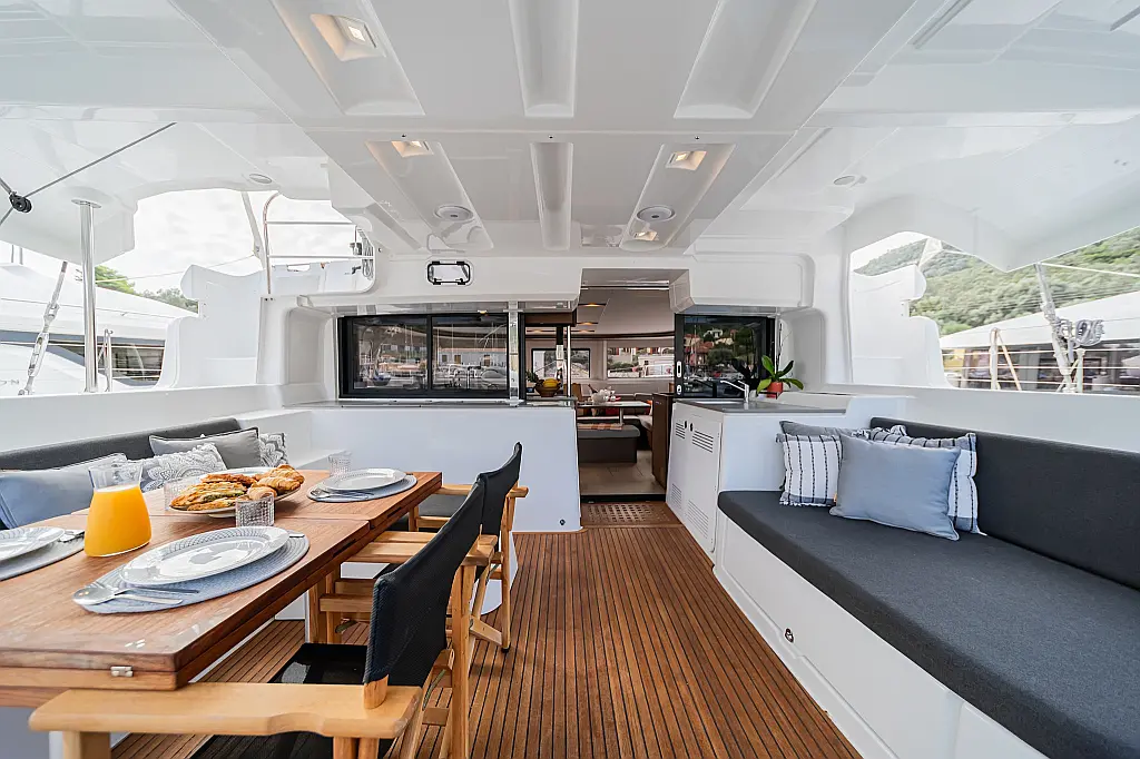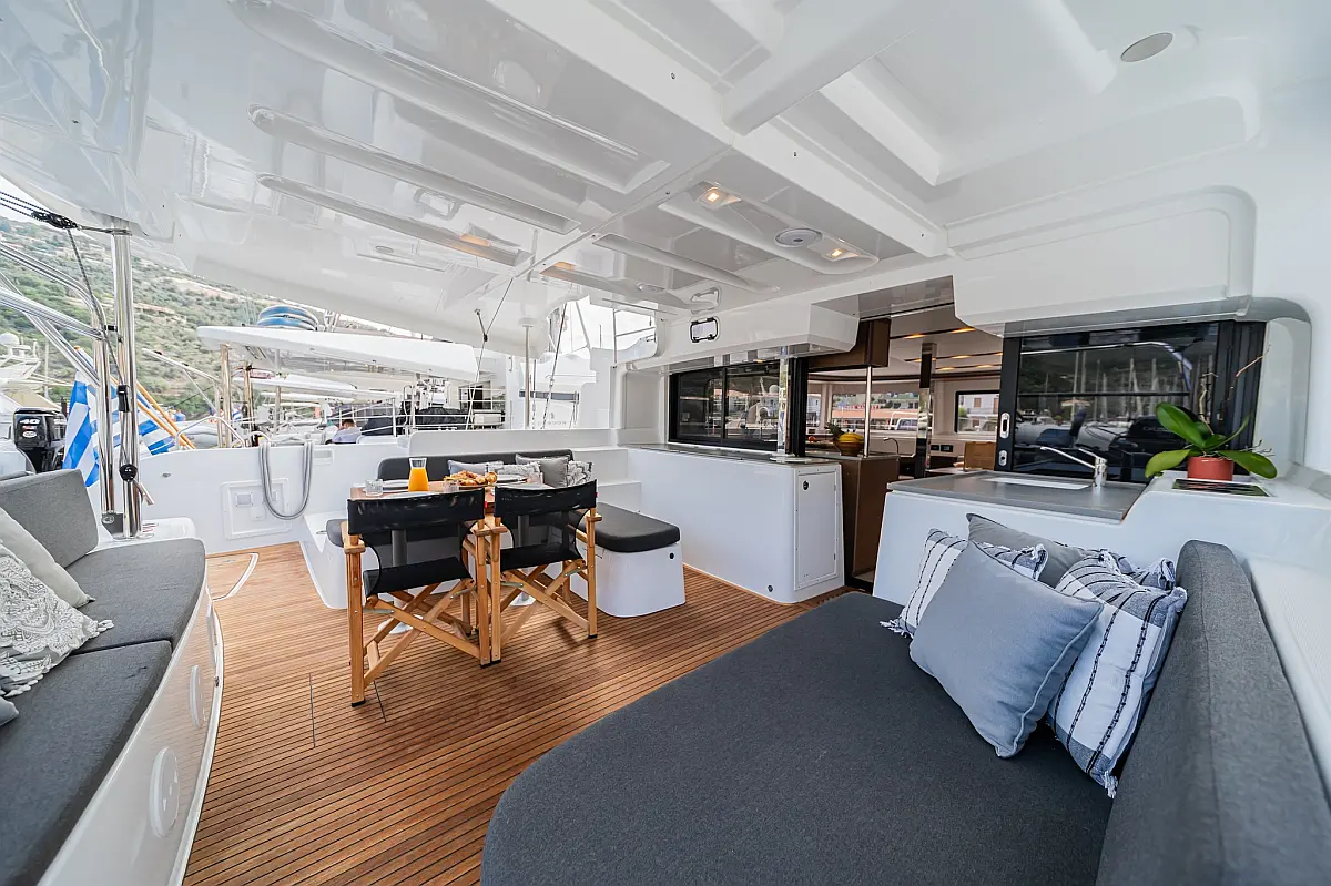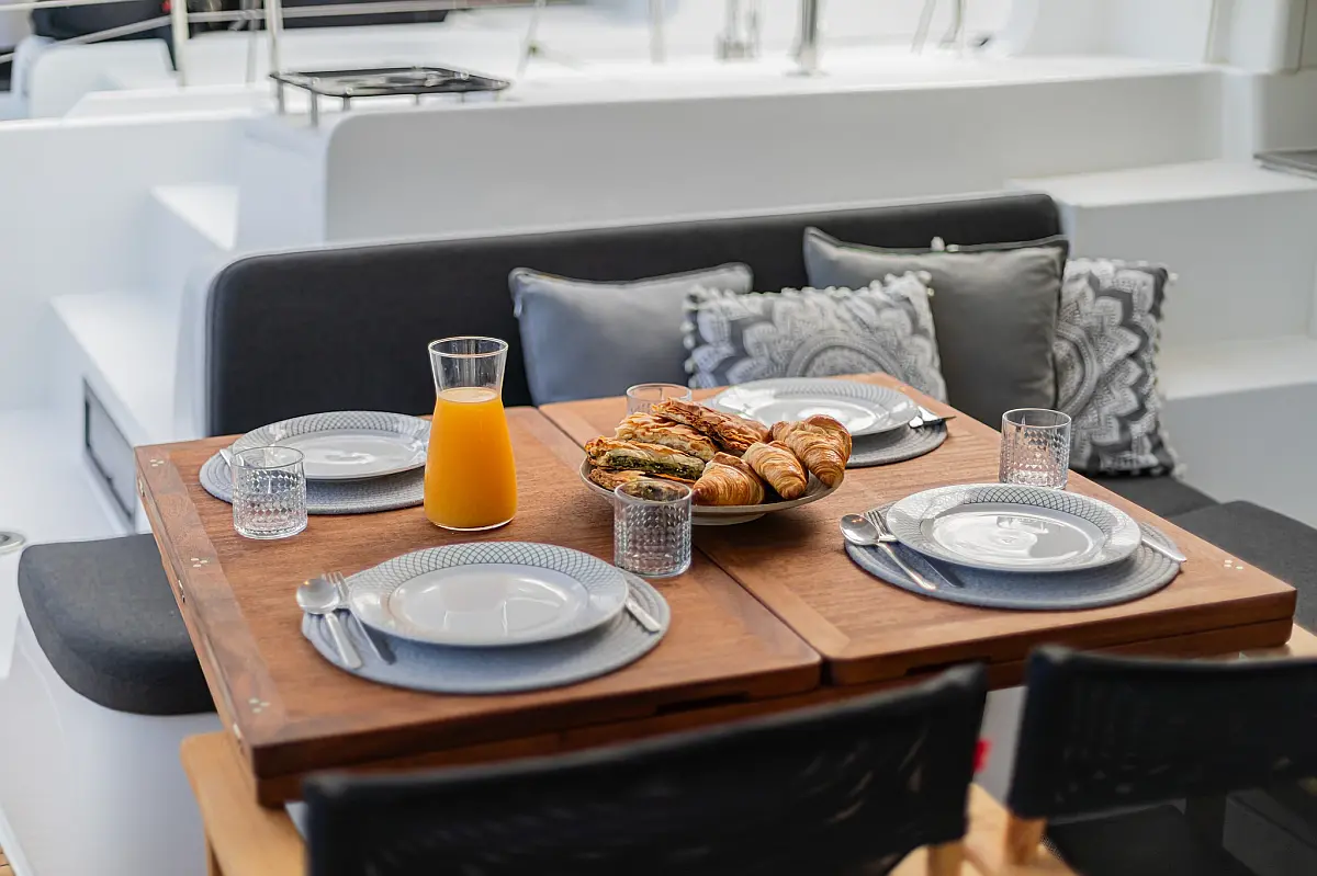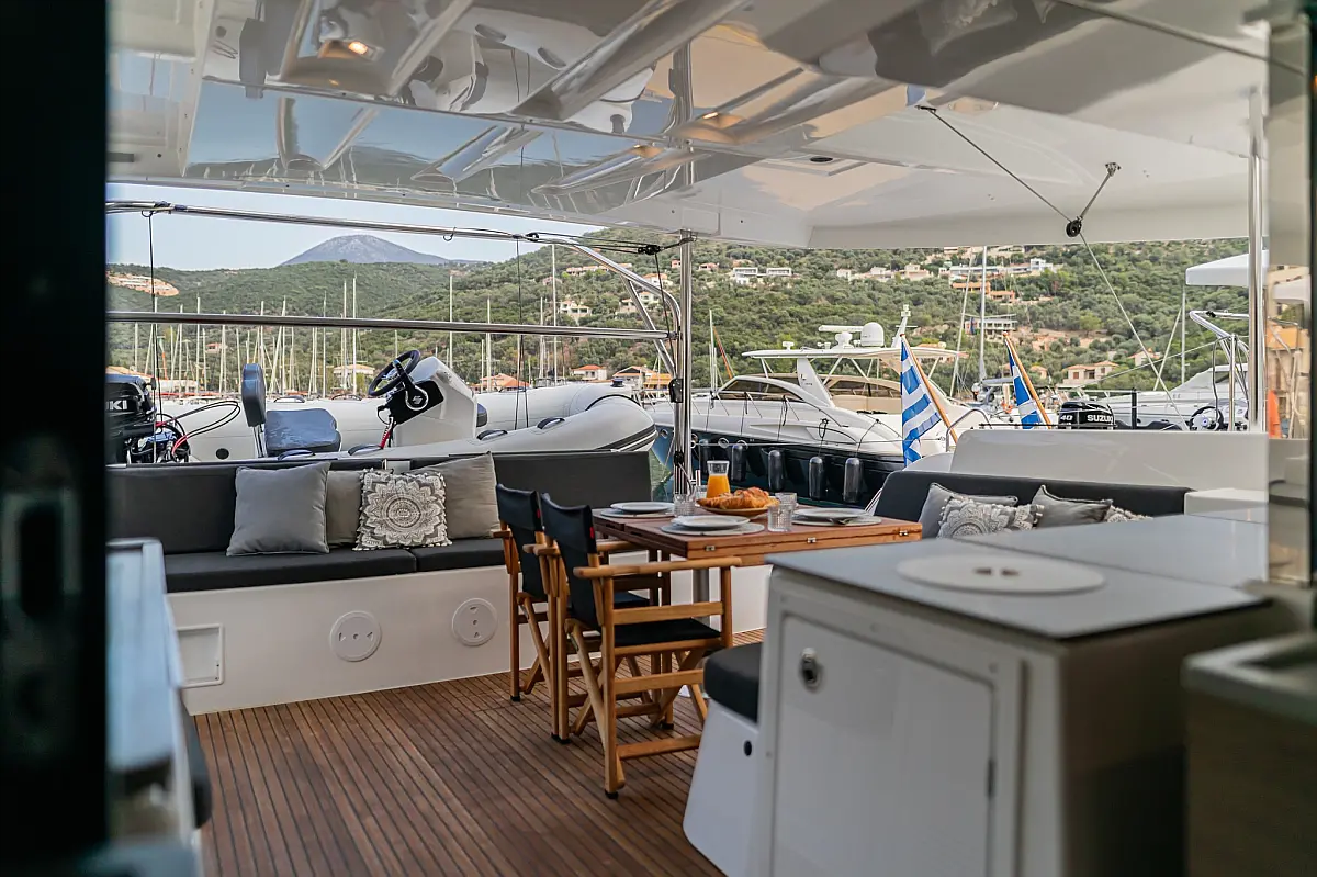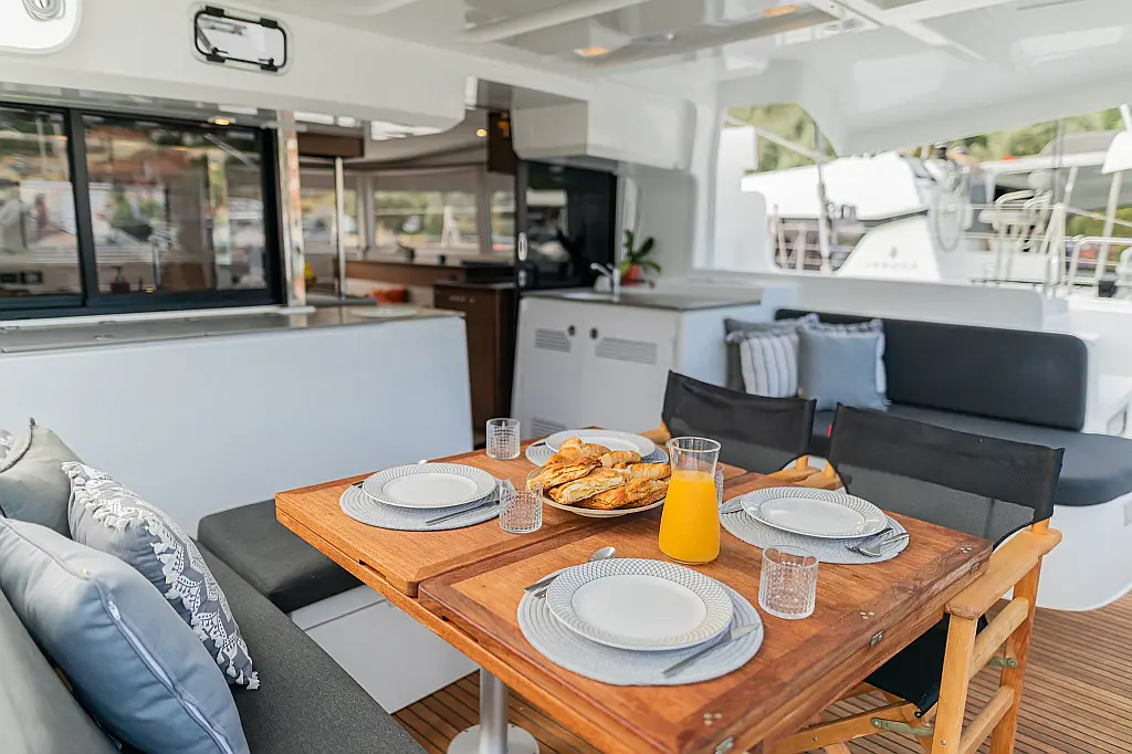 Wi-Fi & Internet, Coffee maker, Ice maker, Teak deck, Air condition, Bimini, Cockpit speakers, Refrigerator, Water maker, Generator, Inverter, Electric toilet, Electric winches, Cockpit cushions, Outboard engine, Barbecue grill in cockpit