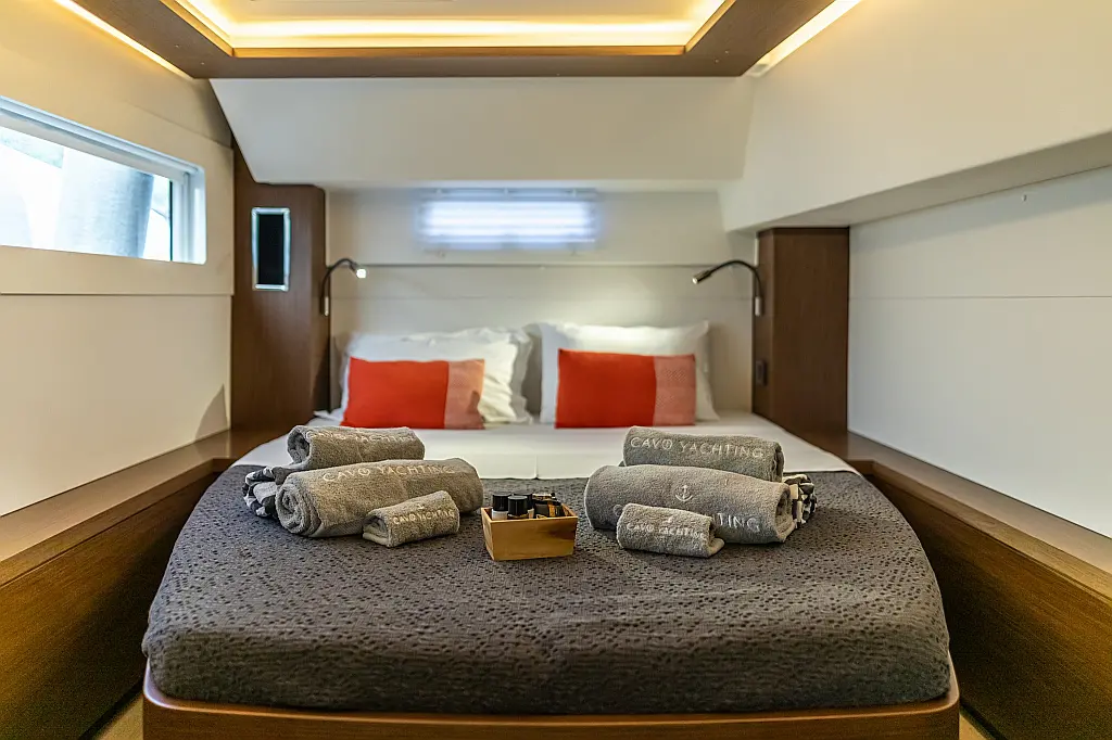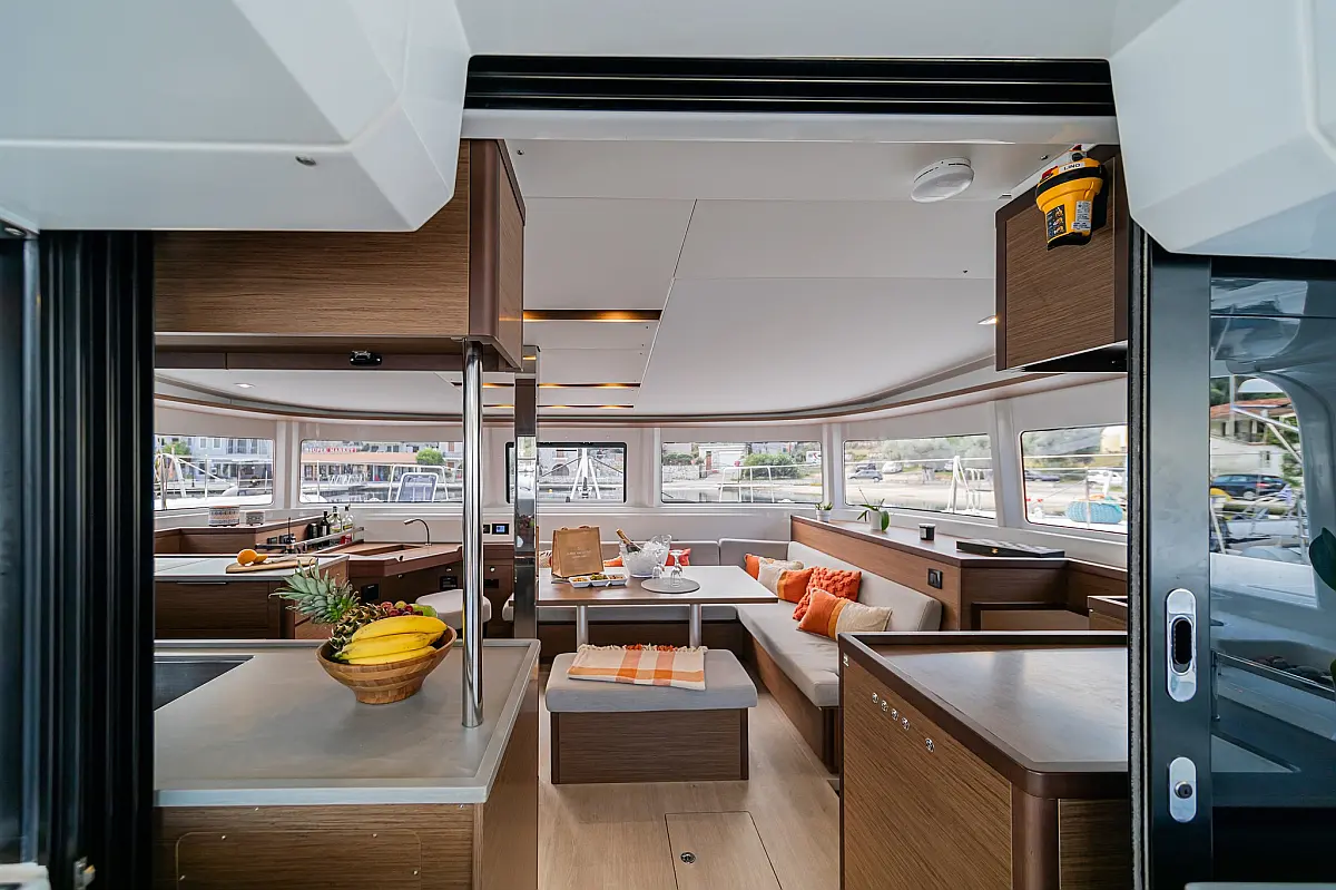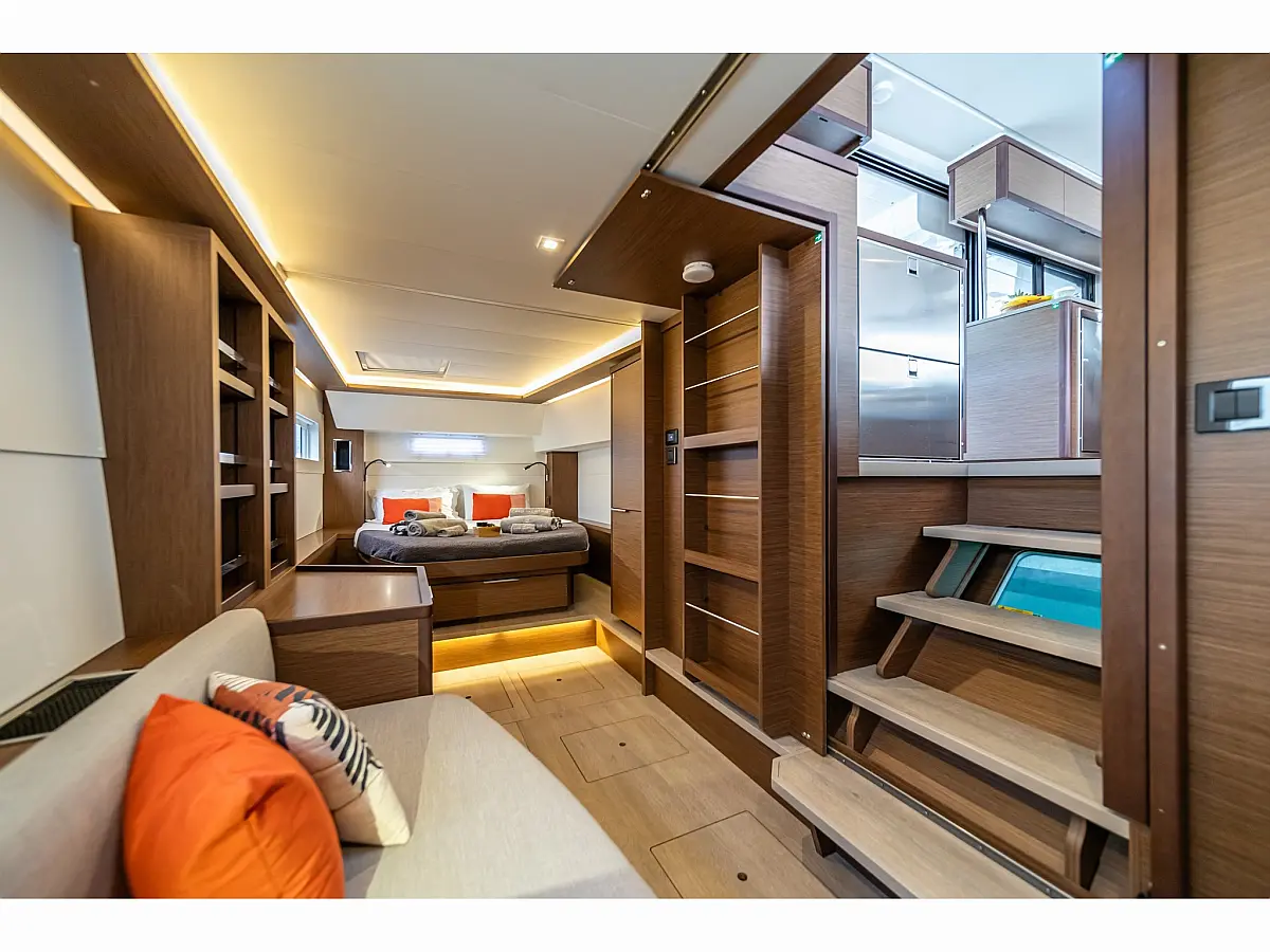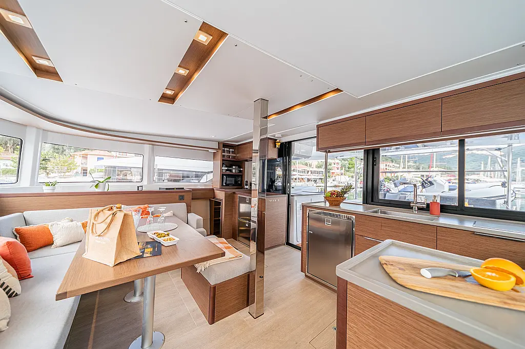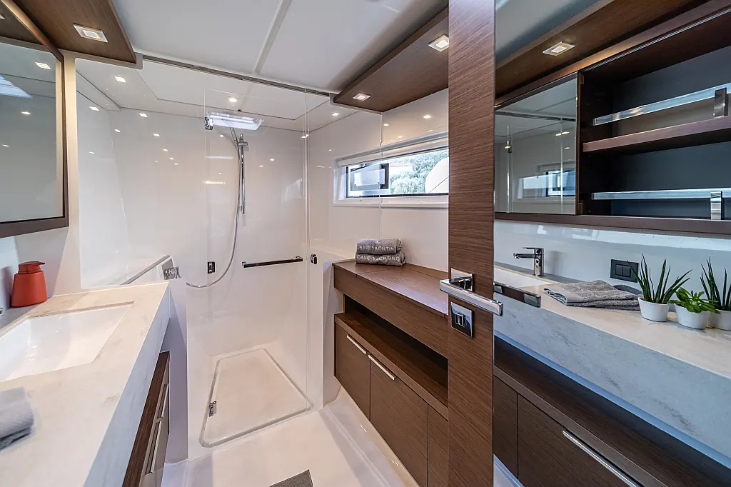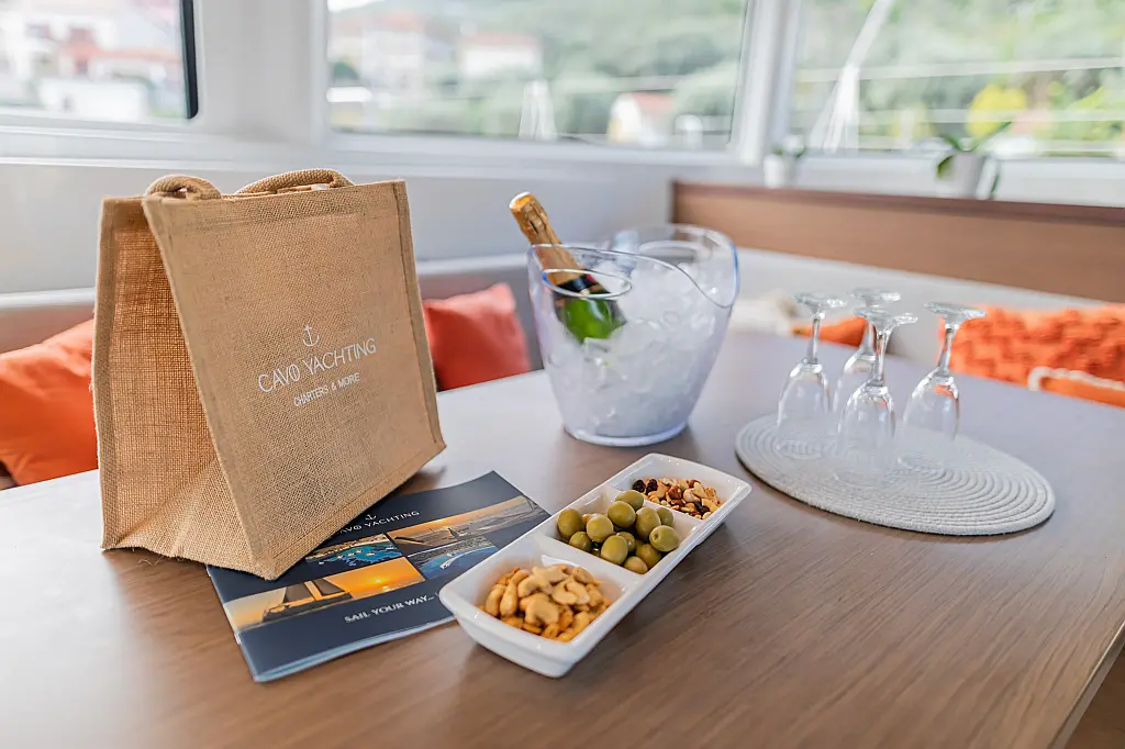 Wi-Fi & Internet, Coffee maker, Ice maker, Teak deck, Air condition, Bimini, Cockpit speakers, Refrigerator, Water maker, Generator, Inverter, Electric toilet, Electric winches, Cockpit cushions, Outboard engine, Barbecue grill in cockpit