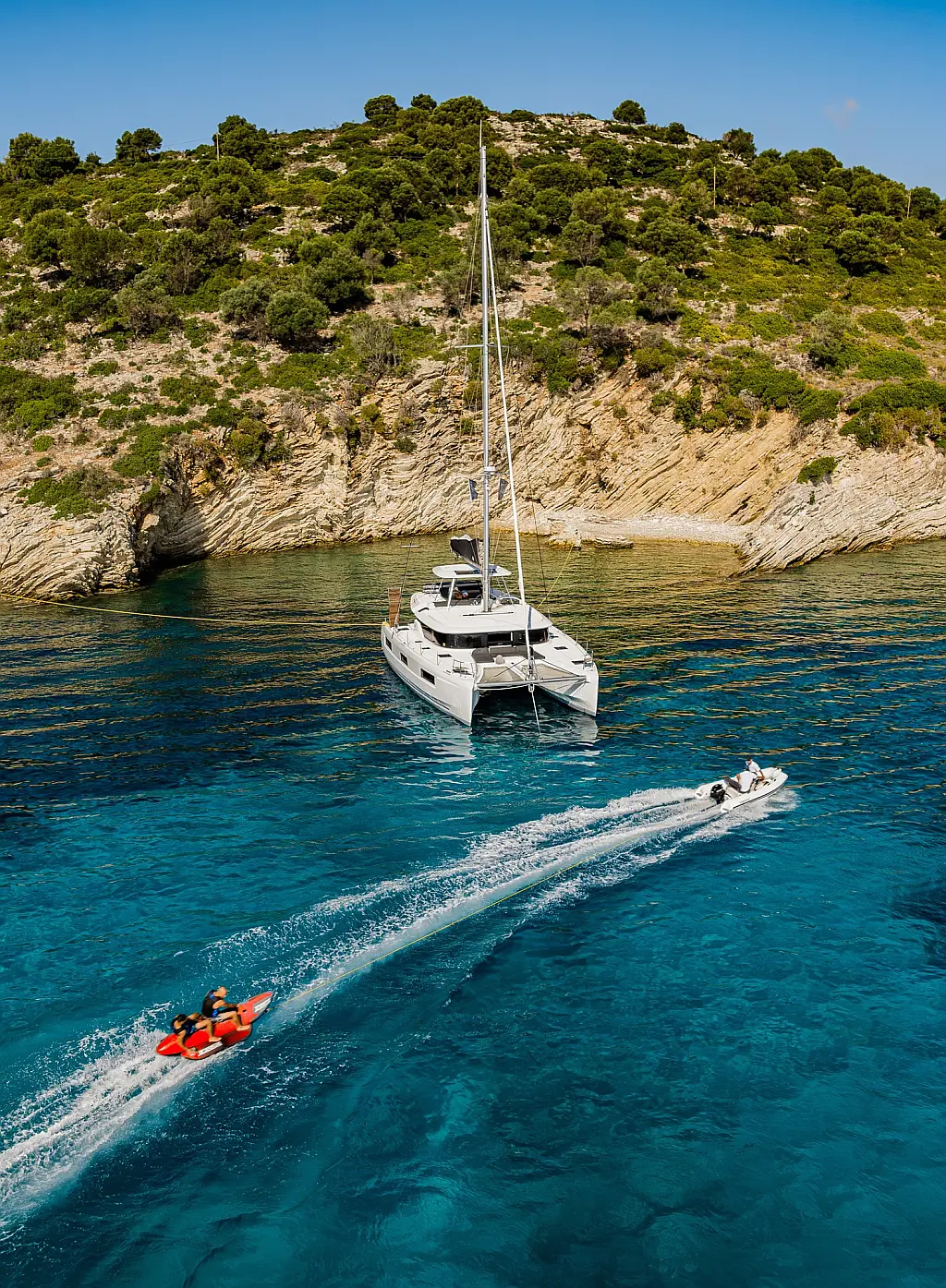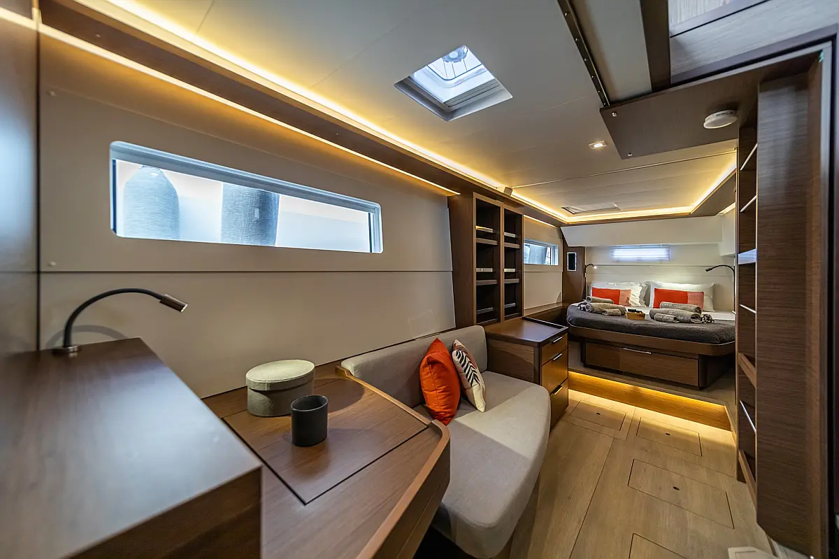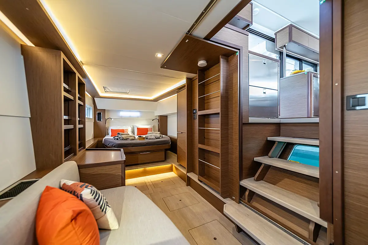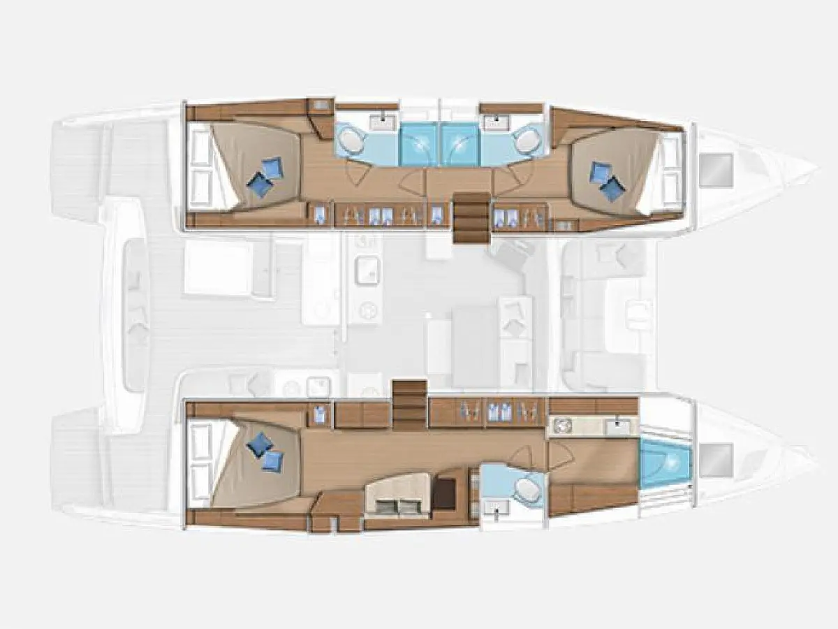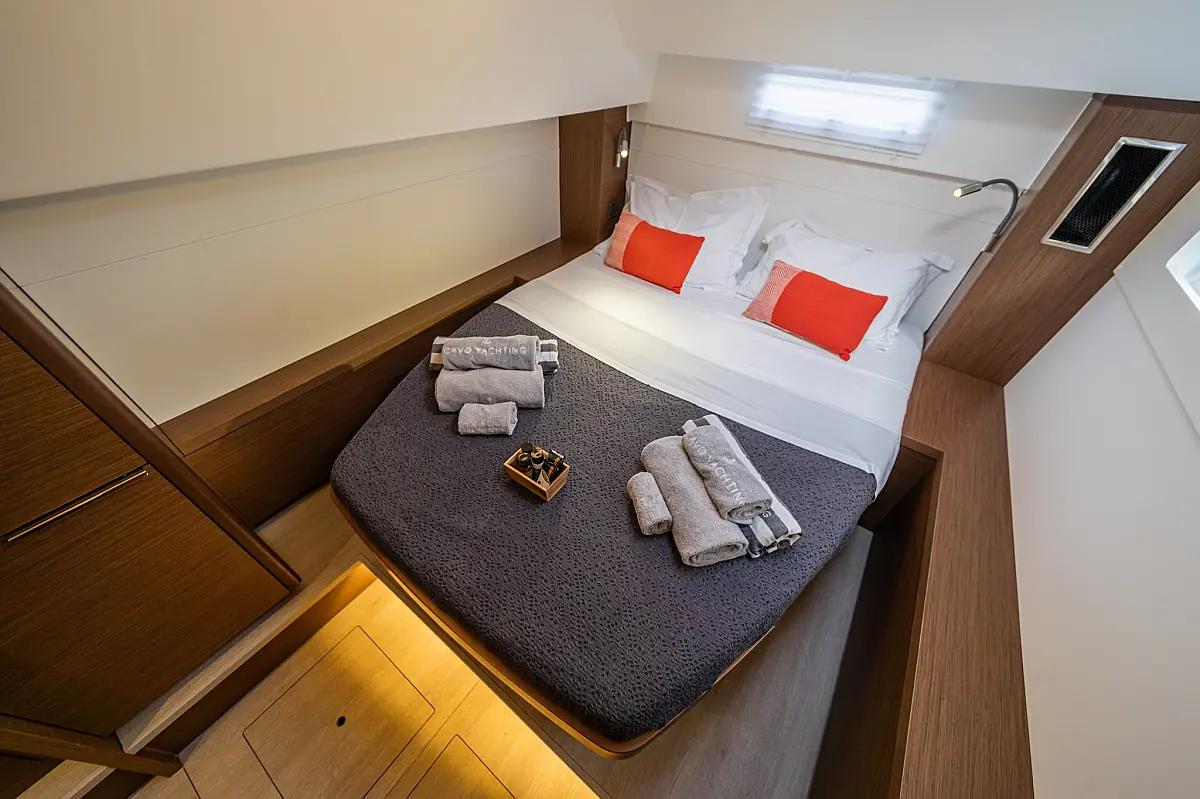 Wi-Fi & Internet, Coffee maker, Ice maker, Teak deck, Air condition, Bimini, Cockpit speakers, Refrigerator, Water maker, Generator, Inverter, Electric toilet, Electric winches, Cockpit cushions, Outboard engine, Barbecue grill in cockpit