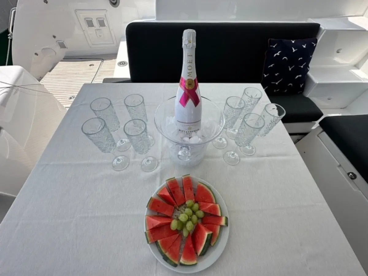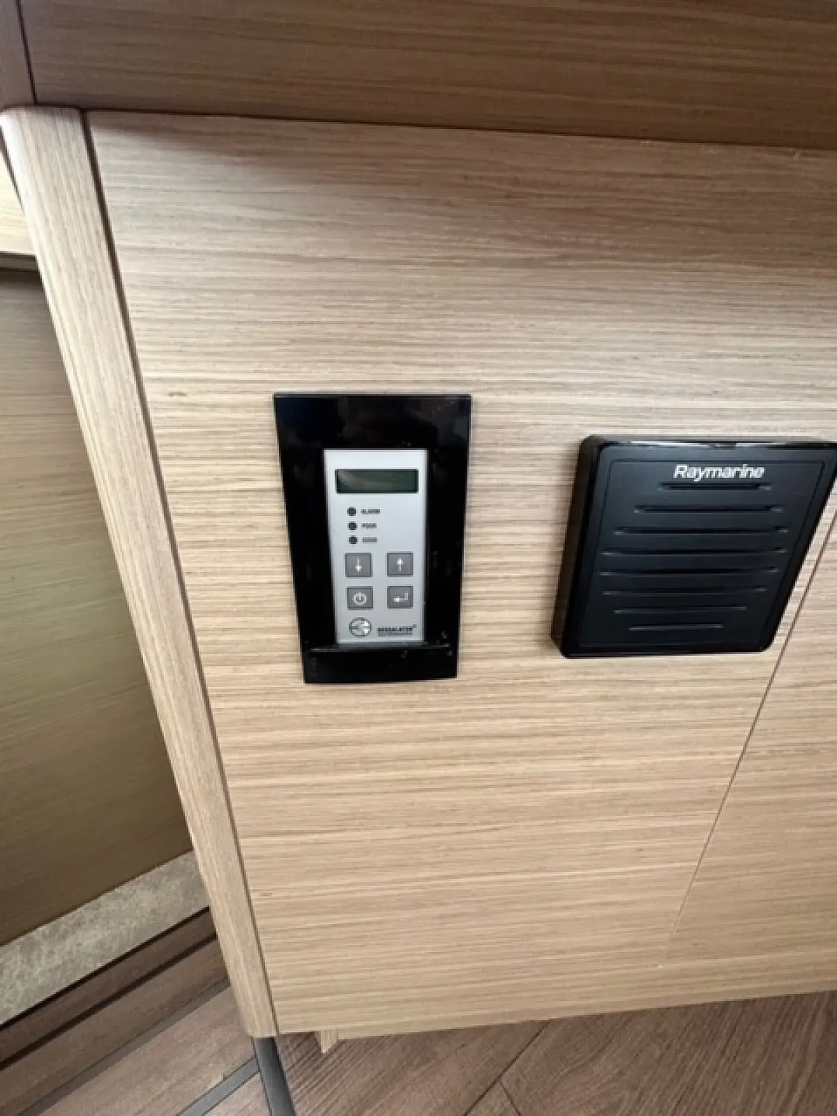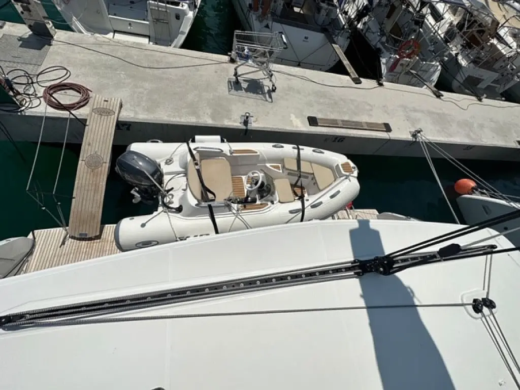 Cockpit cushions, Teak Cockpit, Refrigerator, Air condition, Dinghy, Dishwasher, Generator, Ice maker, Coffee maker, Electric toilet, Solar Panels, Water maker, Heating