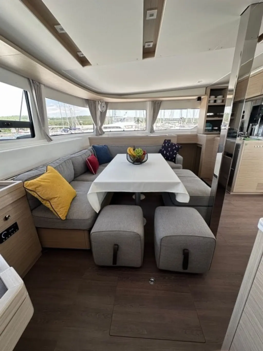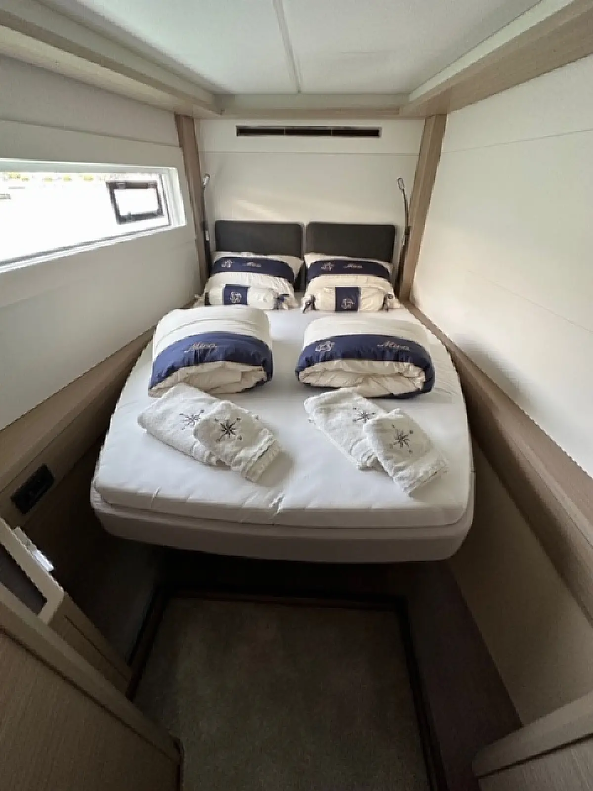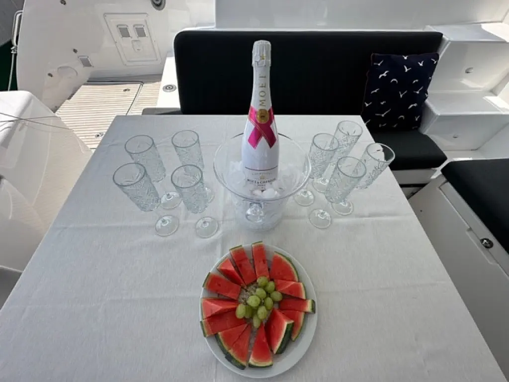 Cockpit cushions, Teak Cockpit, Refrigerator, Air condition, Dinghy, Dishwasher, Generator, Ice maker, Coffee maker, Electric toilet, Solar Panels, Water maker, Heating