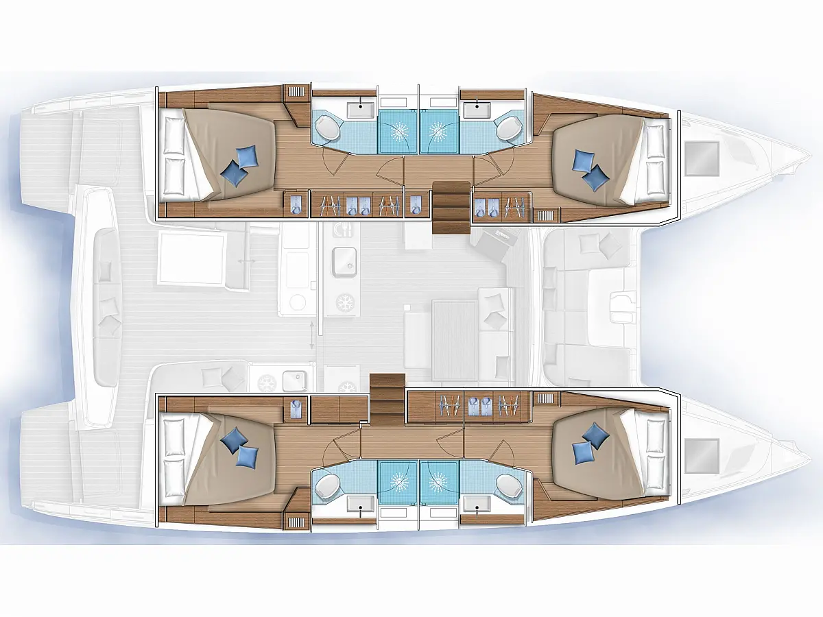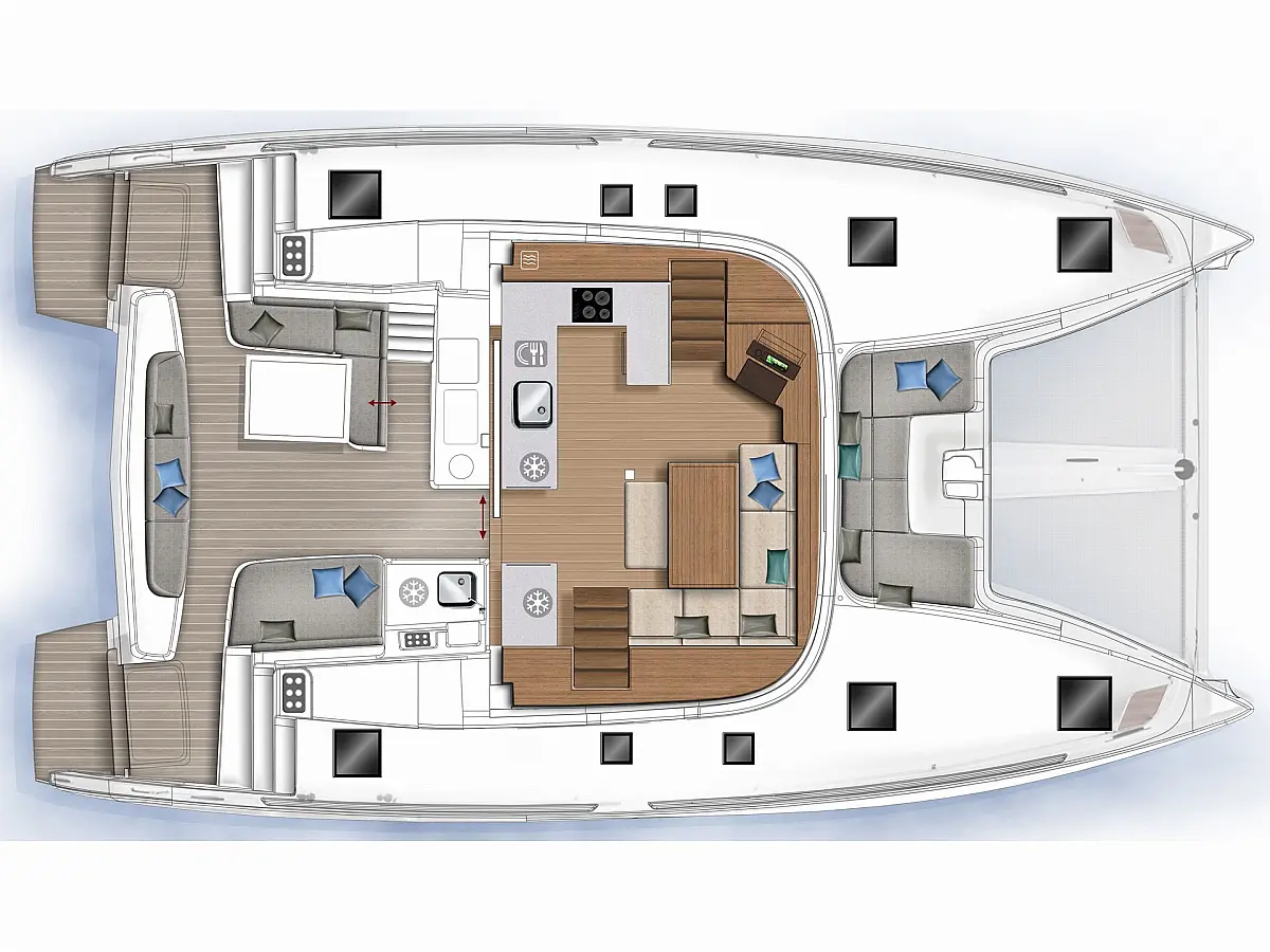 Refrigerator, Electric toilet, Cockpit speakers, Bimini, Sprayhood, Flybridge, Cockpit cushions, Wi-Fi & Internet, Electric winches, Generator, Inverter, Water maker, Dinghy, Outboard engine