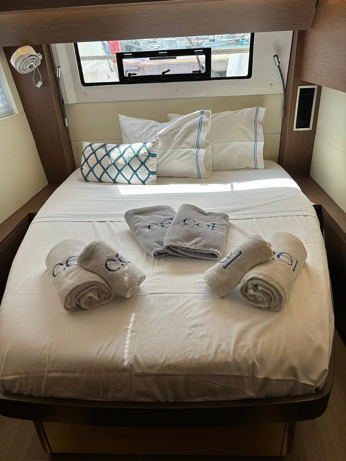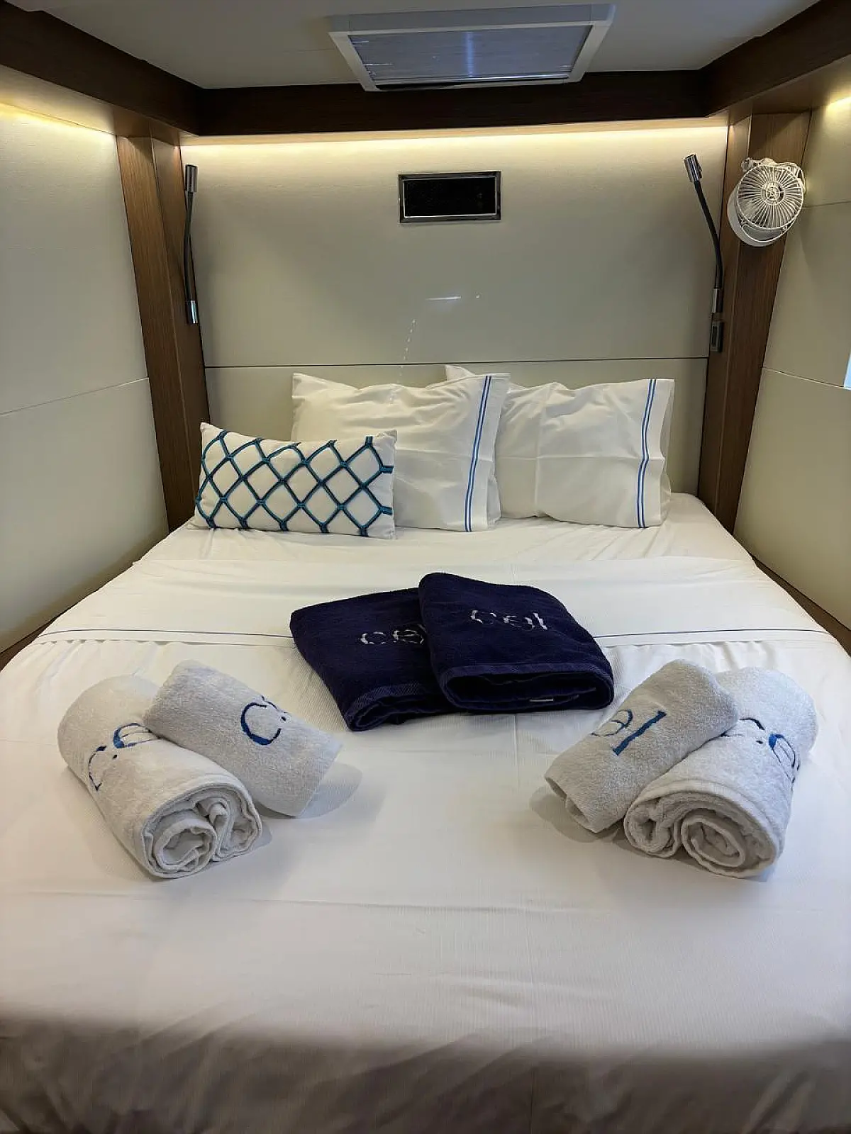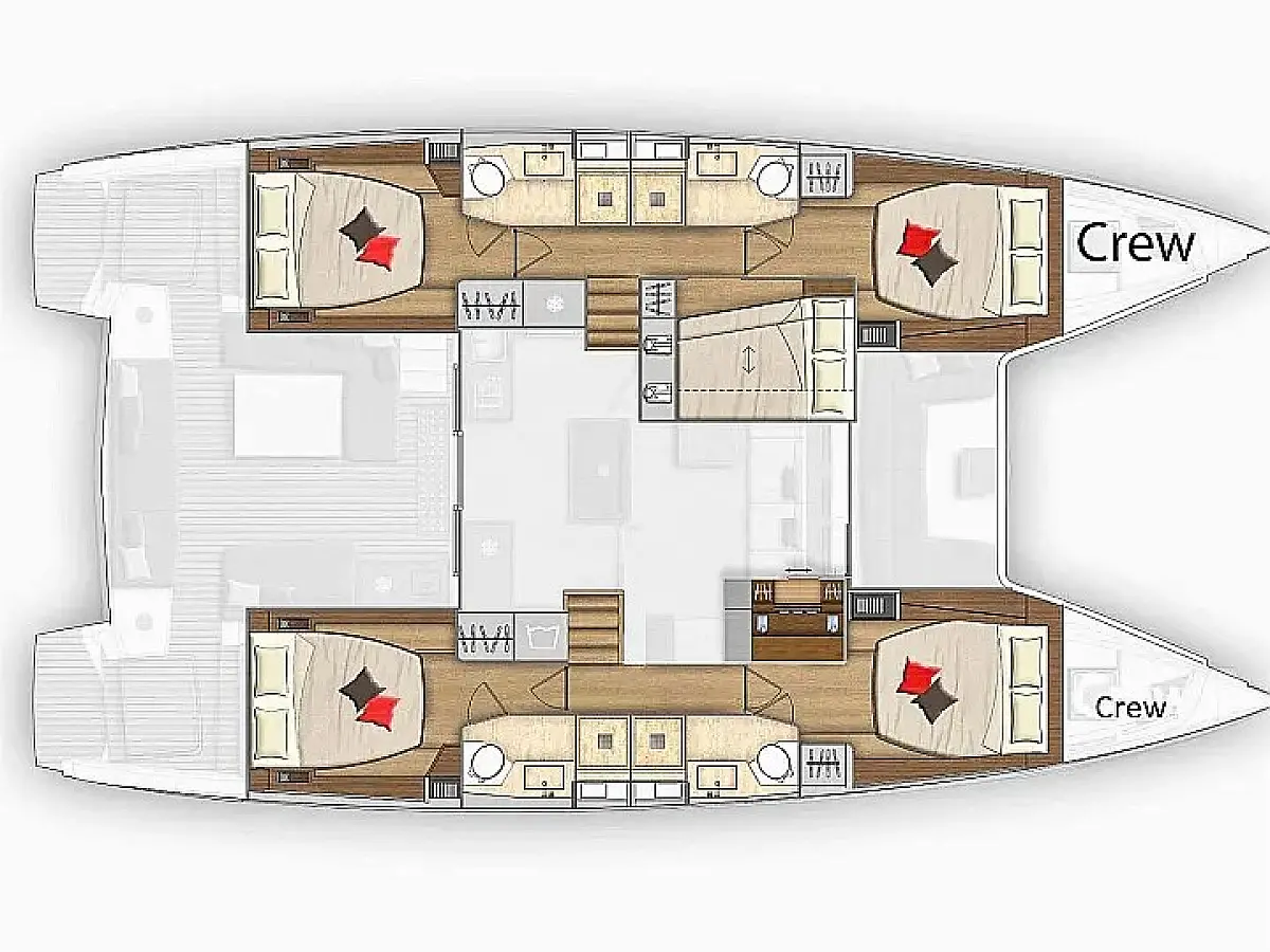 7 (4 double + 2 semi-double cabins (one for the crew in case of 2 crew members onboard) + 1 single for the crew)