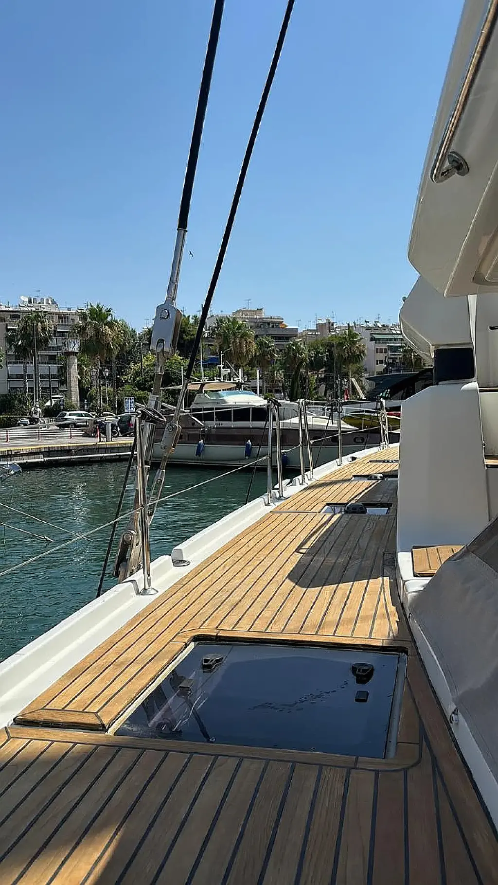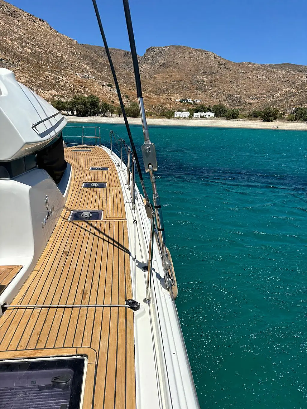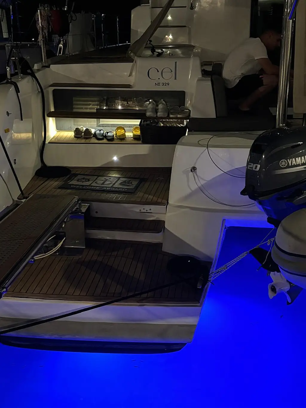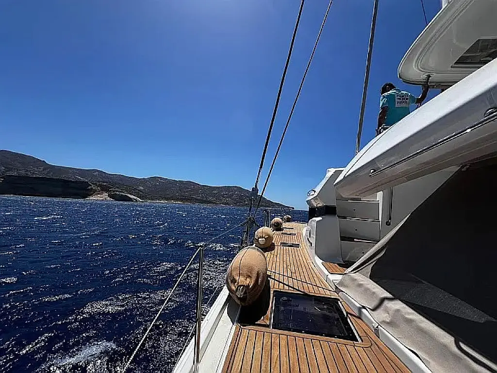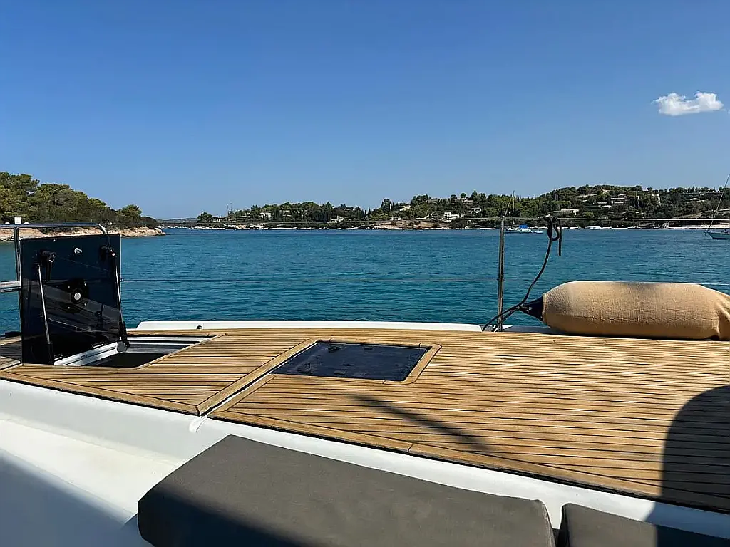 Cockpit speakers, Air condition, Bimini, Refrigerator, Coffee maker, Generator, Hydraulic gangway, Ice maker, Outboard engine, Sprayhood, Teak deck, Water maker