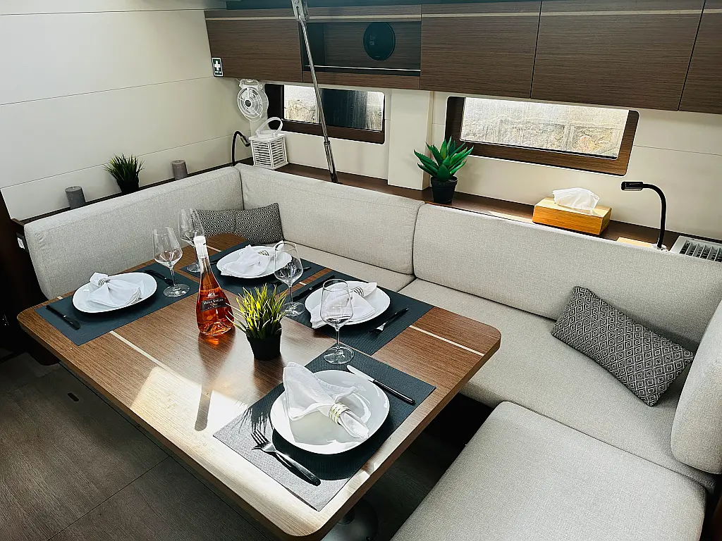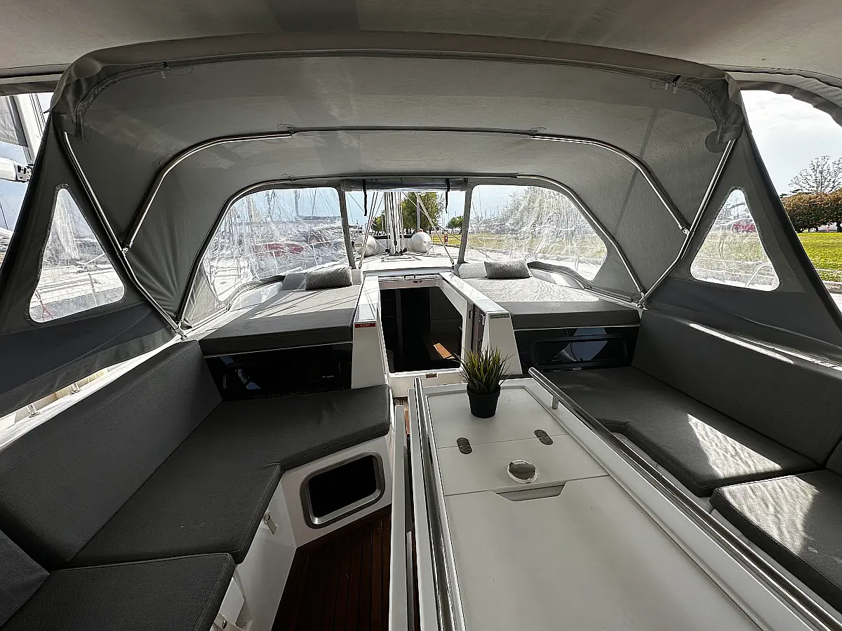 Cockpit speakers, Dinghy, Bimini, Sprayhood, Electric toilet, Holding tank, Inverter, Solar Panels, Refrigerator