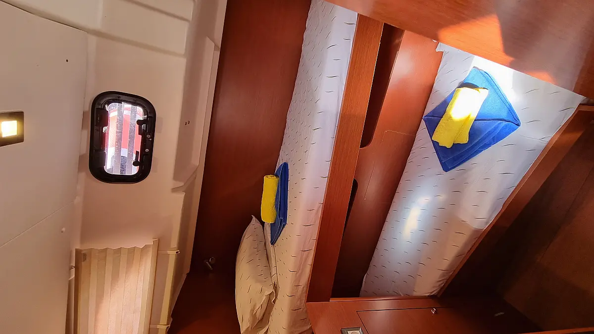 Ice maker, Refrigerator, Bimini, Sprayhood, Outboard engine, Electric winches, Coffee maker, Generator, Electric toilet, Teak Cockpit, Air condition, Heating, Cockpit cushions