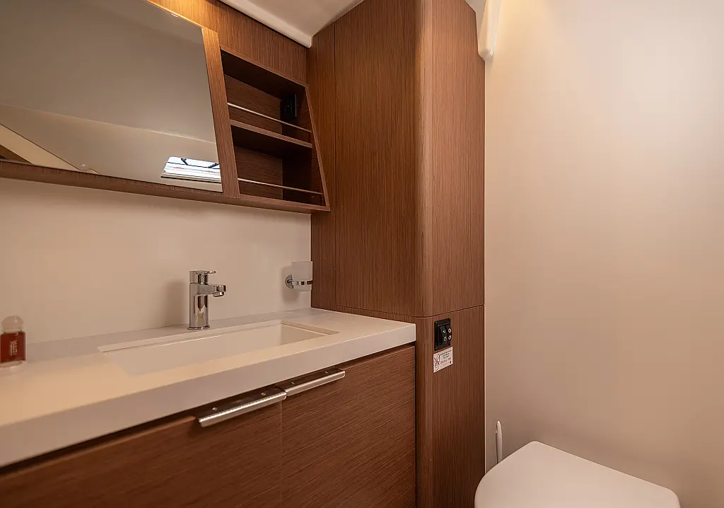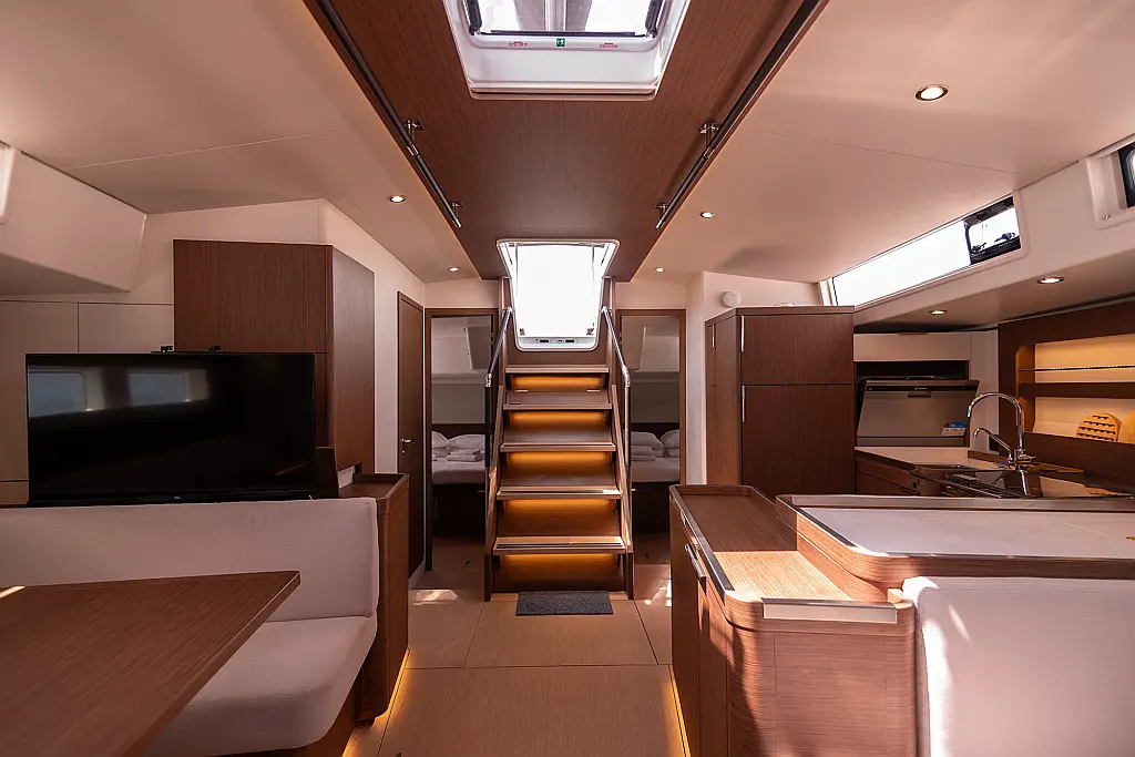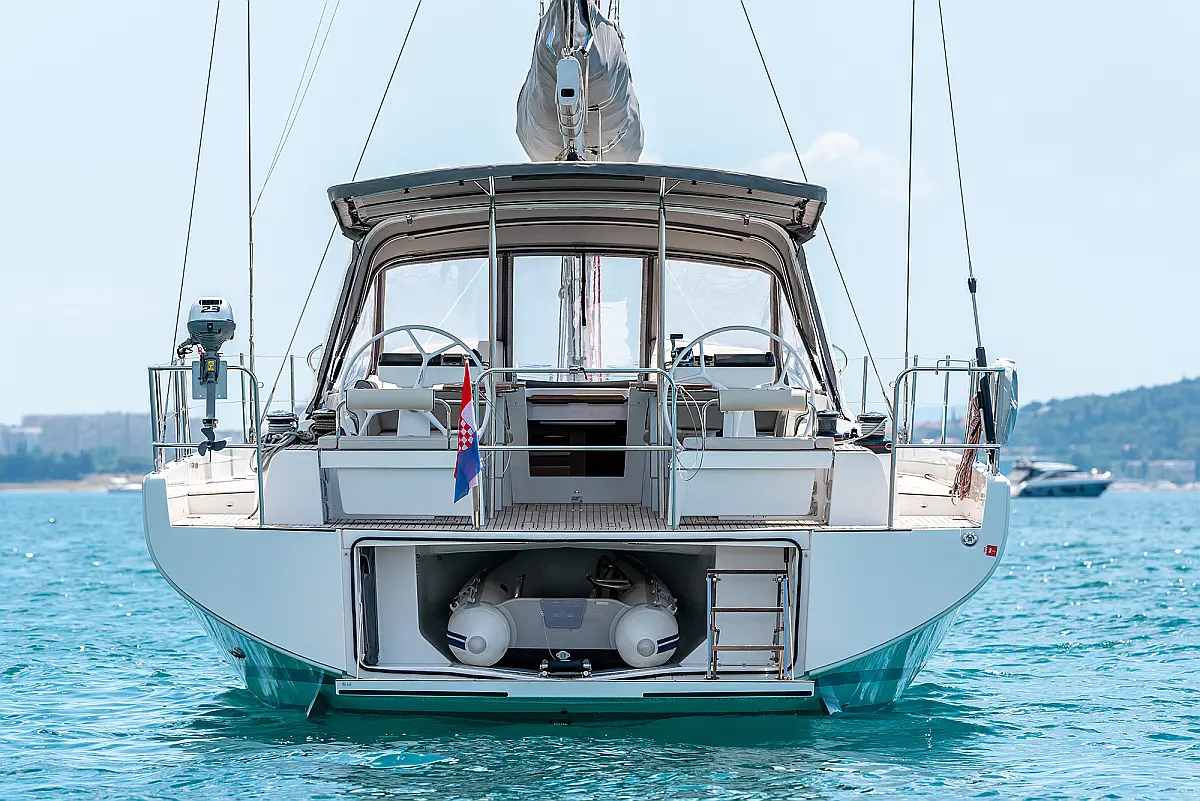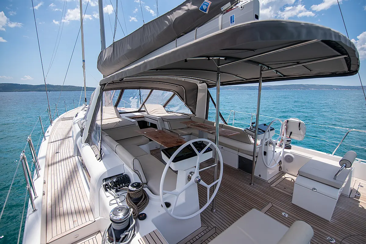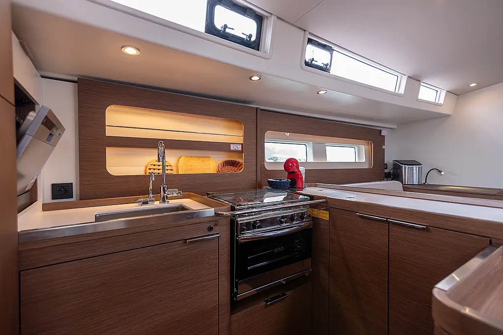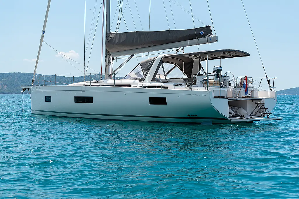 Teak Cockpit, Swimming platform, Barbecue grill in cockpit, Electric winches, Teak deck, Air condition, Generator, Inverter, Water maker, Dinghy, Coffee maker, Dishwasher, Ice maker, Refrigerator, Sprayhood, Wi-Fi & Internet, Cockpit speakers