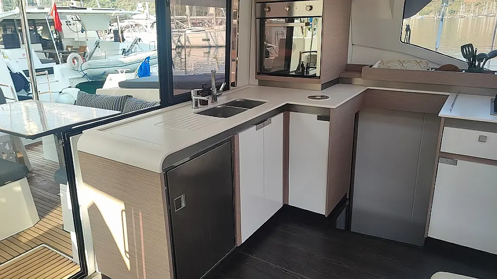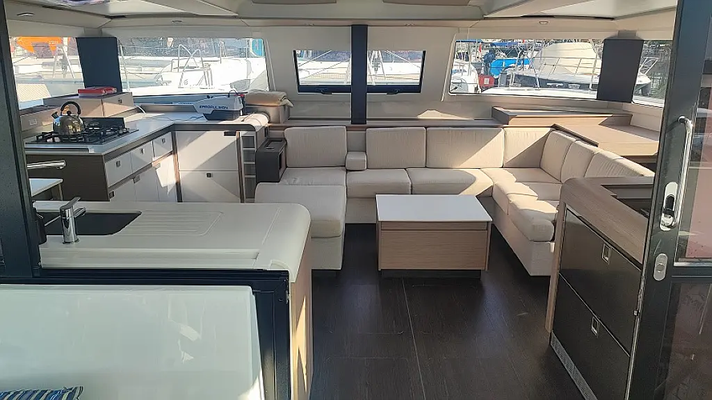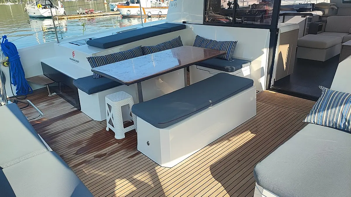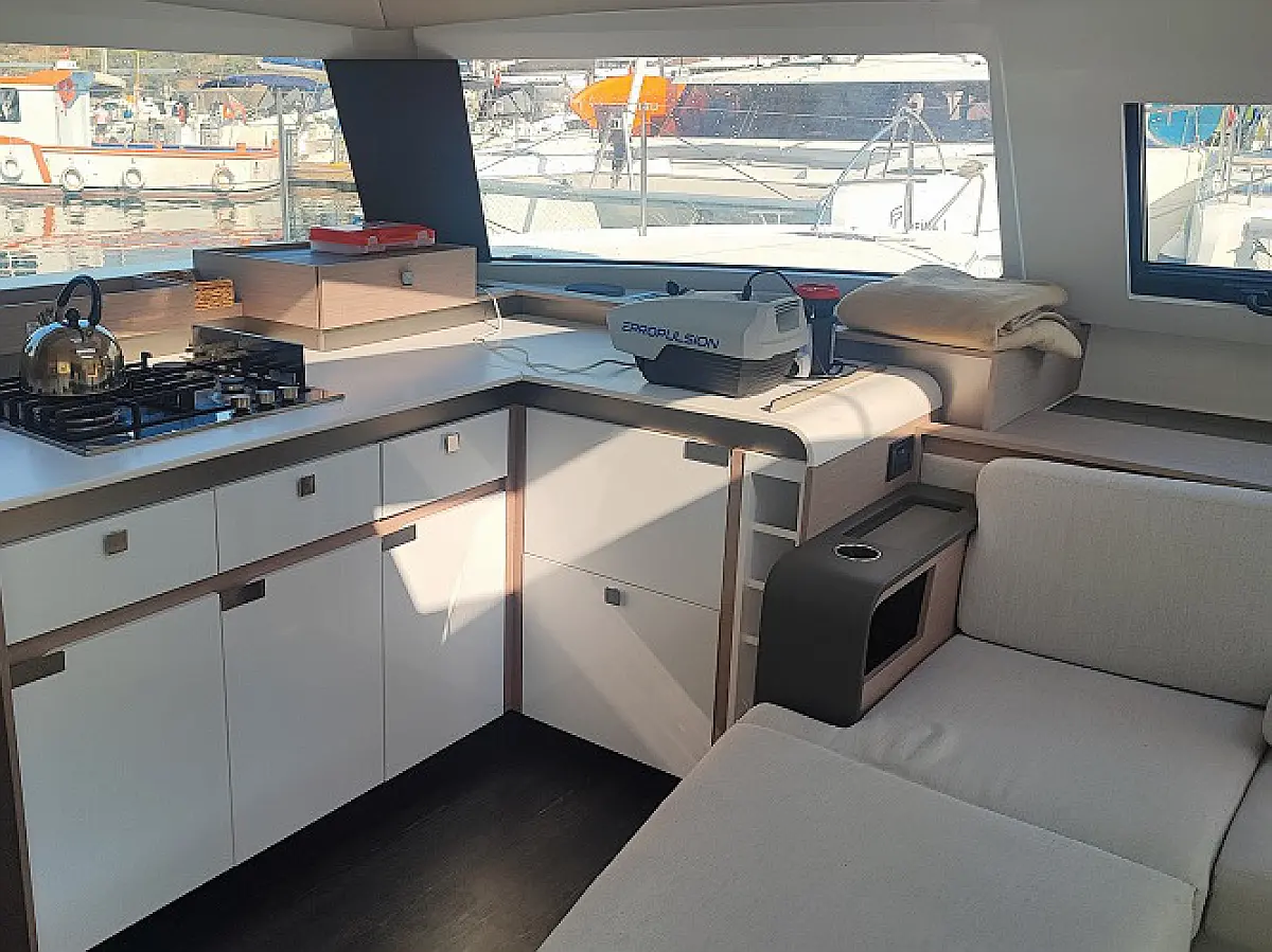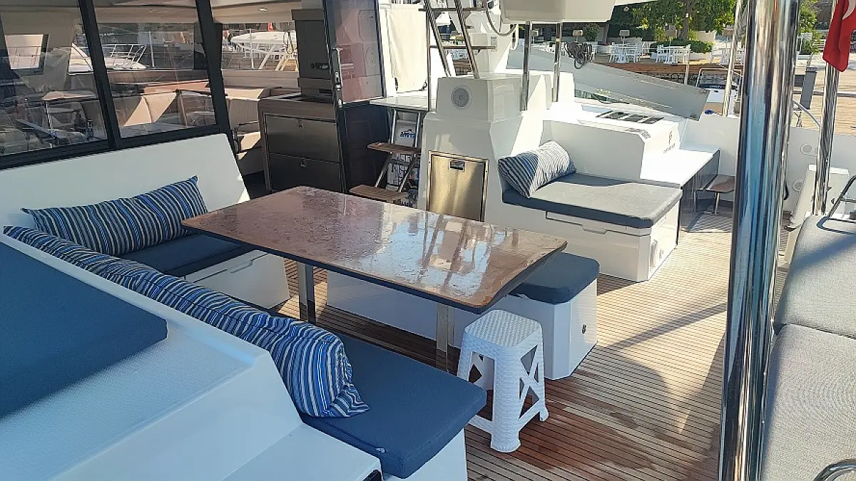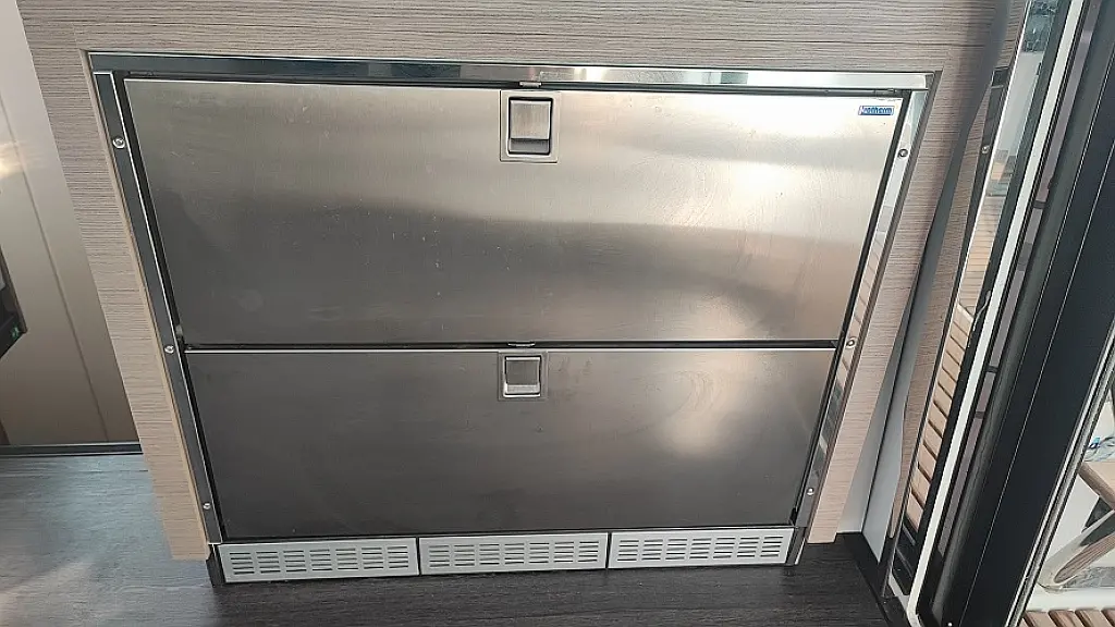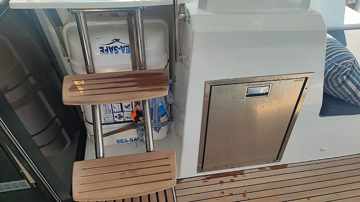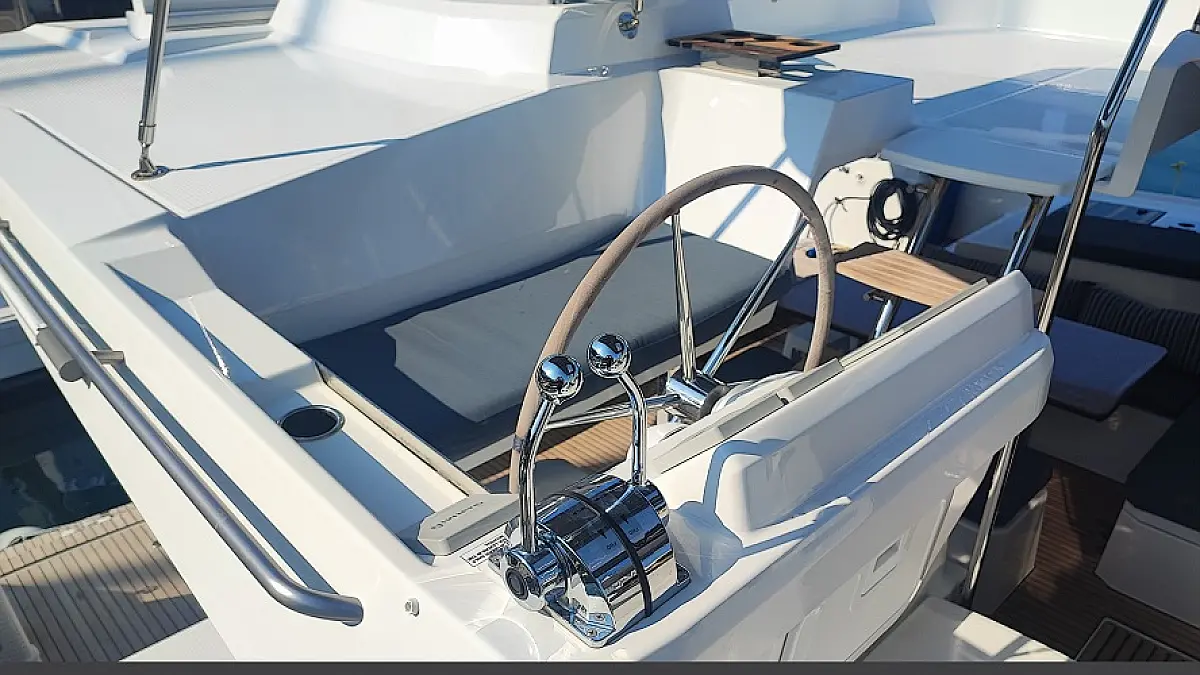 Lodówka, Ponton, poduszka kokpitu, WC elektryczne, Teak Cockpit, Silnik do pontonu, Kabestany elektryczne, Generator, Klimat, Ogrzewanie