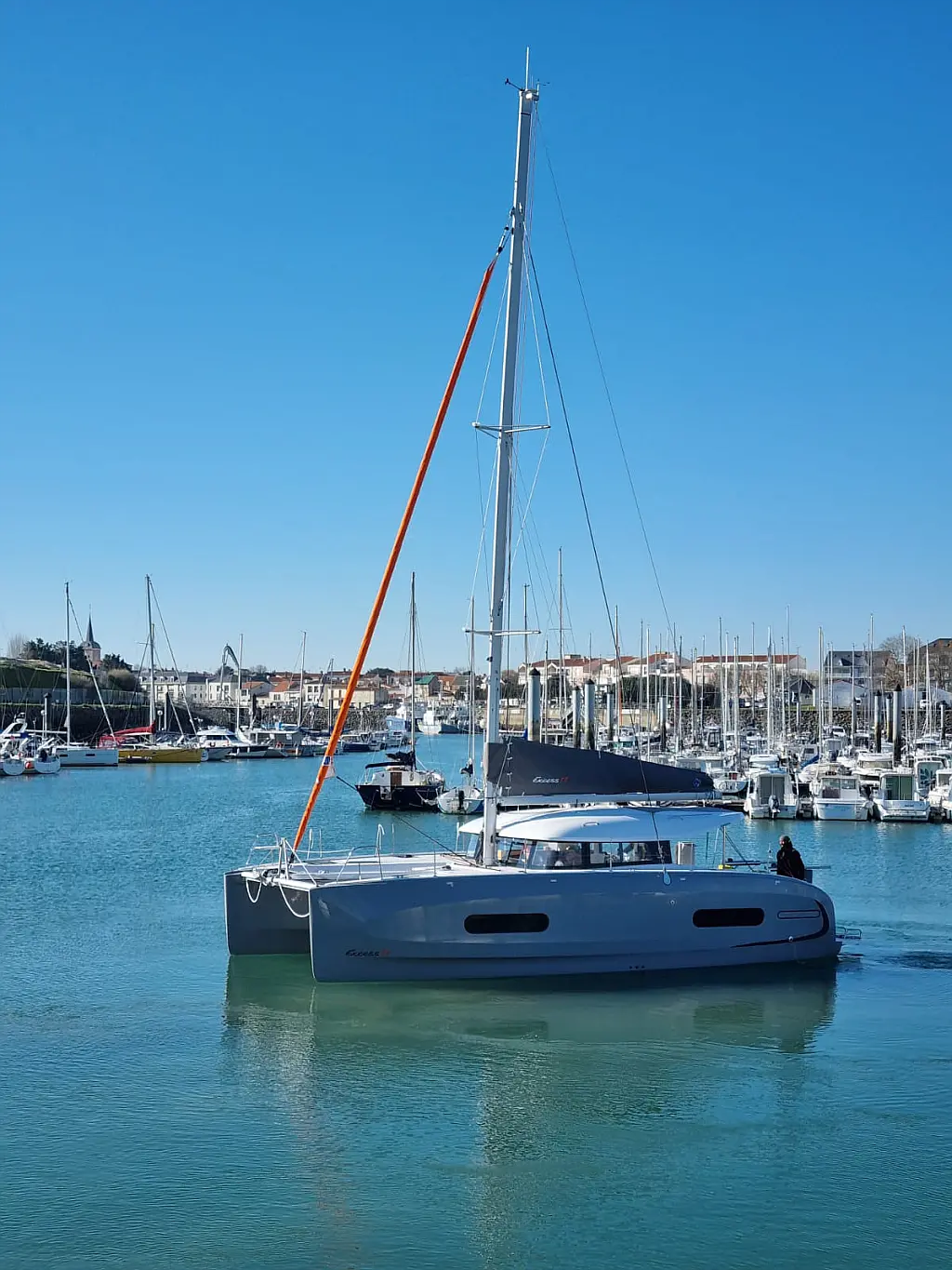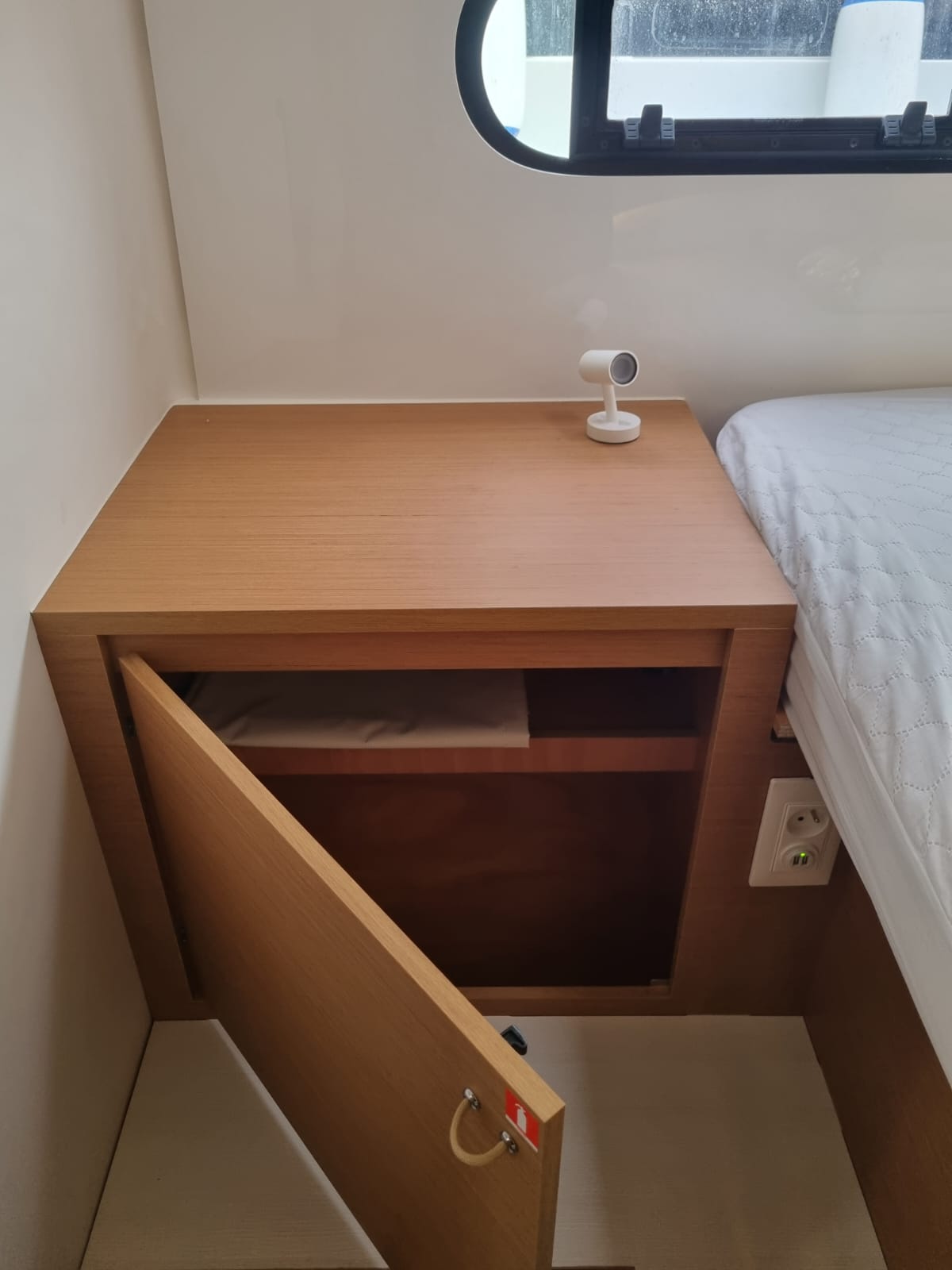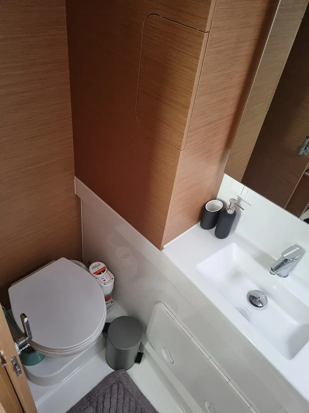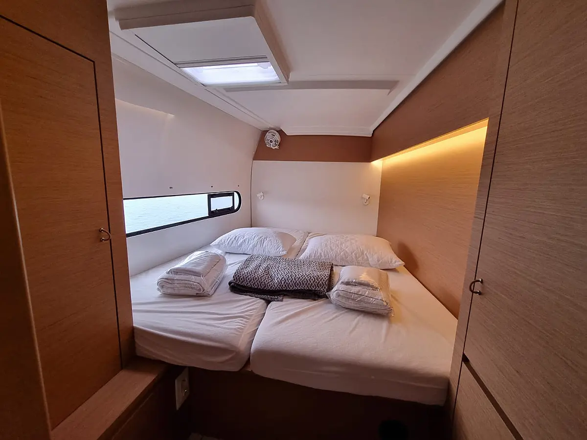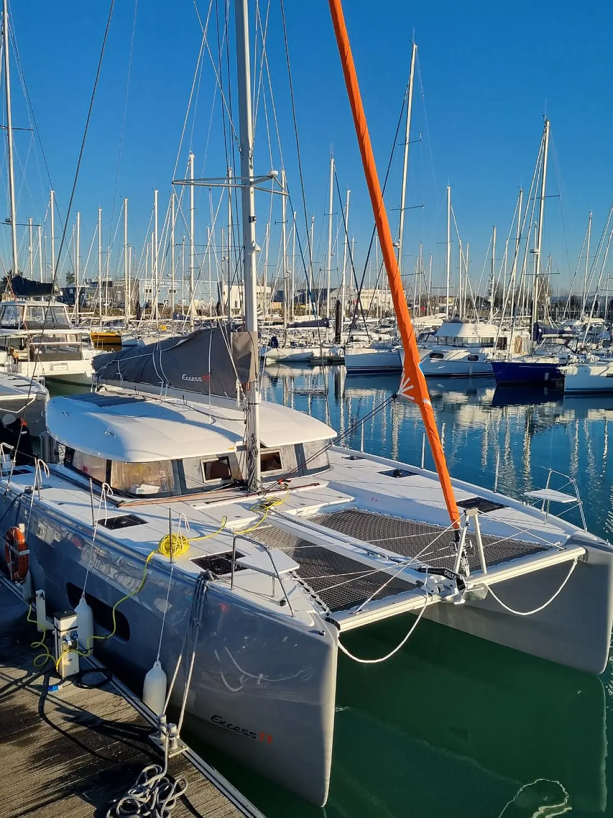 Watermaker, Generator, Falownik, Klimat, Ekspres do kawy, WC elektryczne, Ponton, Kostkarka do lodu, Lodówka, Owiewka na kabinie, Bimini (daszek nad kokpitem)