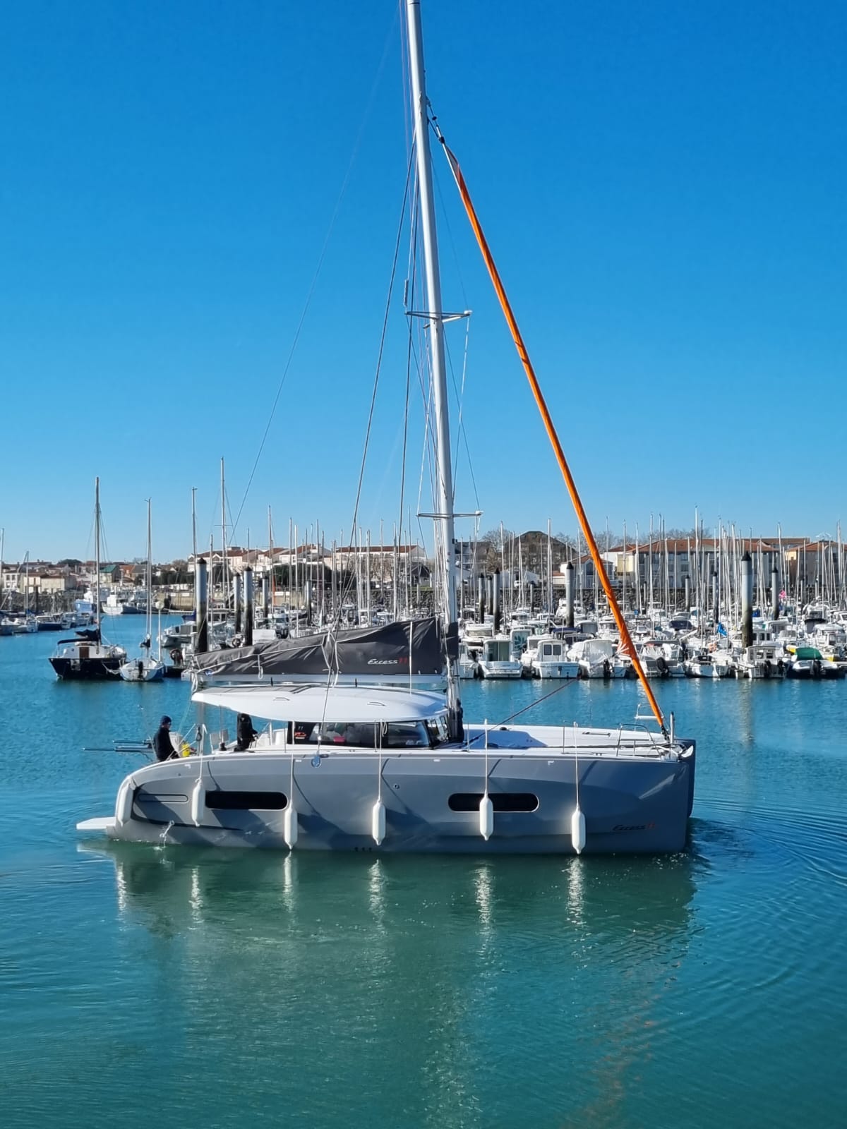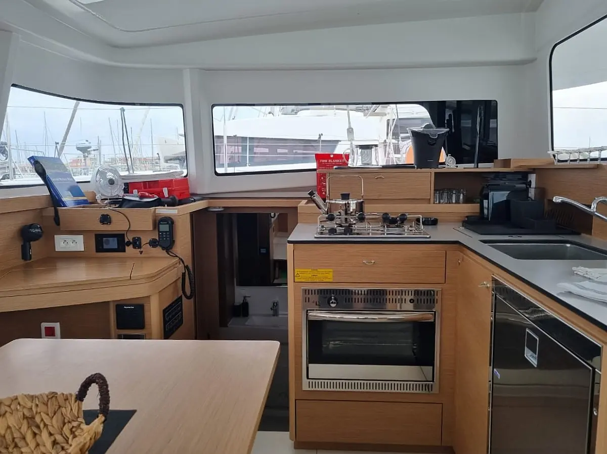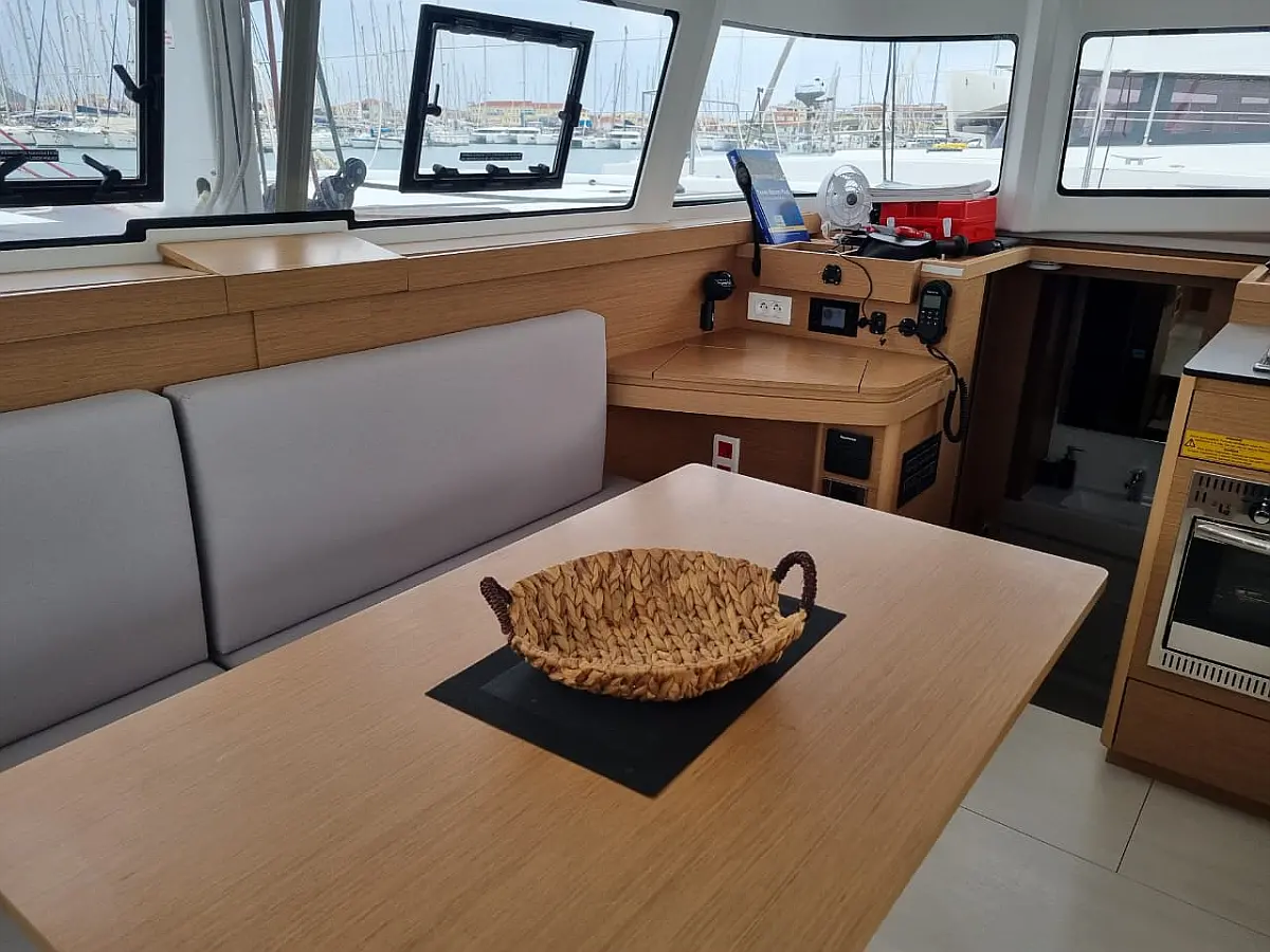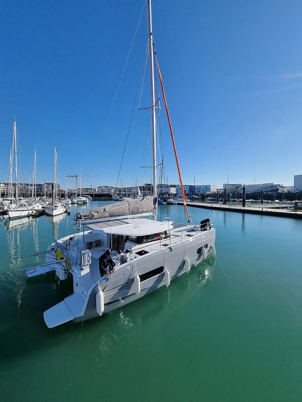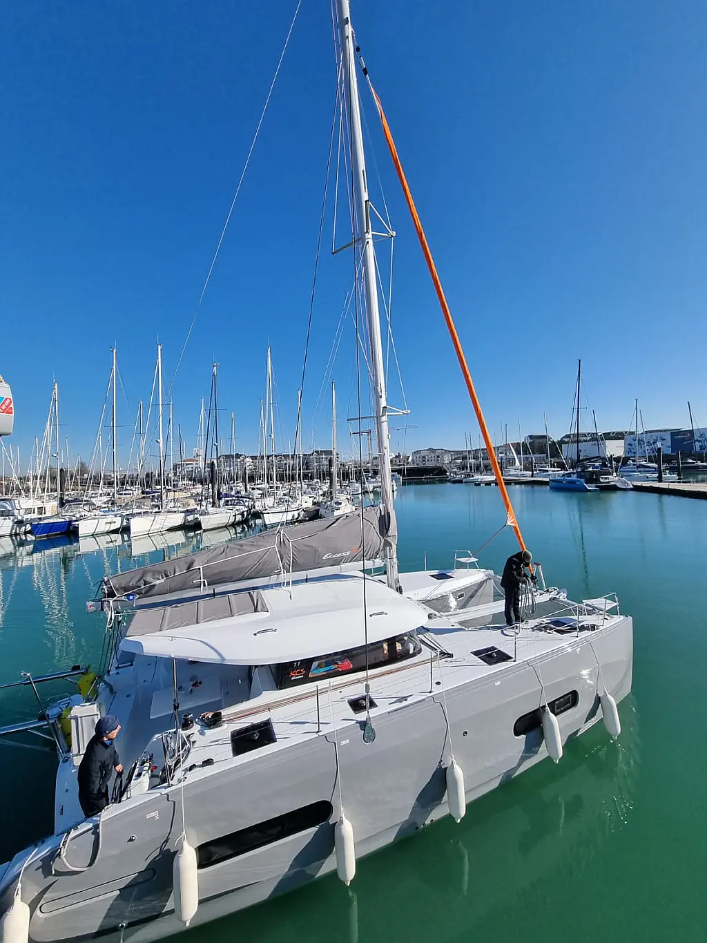 Watermaker, Generator, Falownik, Klimat, Ekspres do kawy, WC elektryczne, Ponton, Kostkarka do lodu, Lodówka, Owiewka na kabinie, Bimini (daszek nad kokpitem)