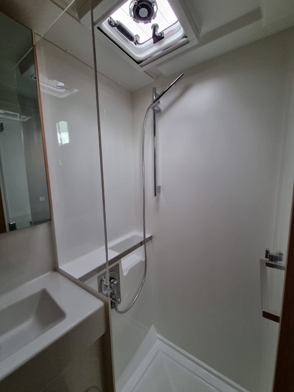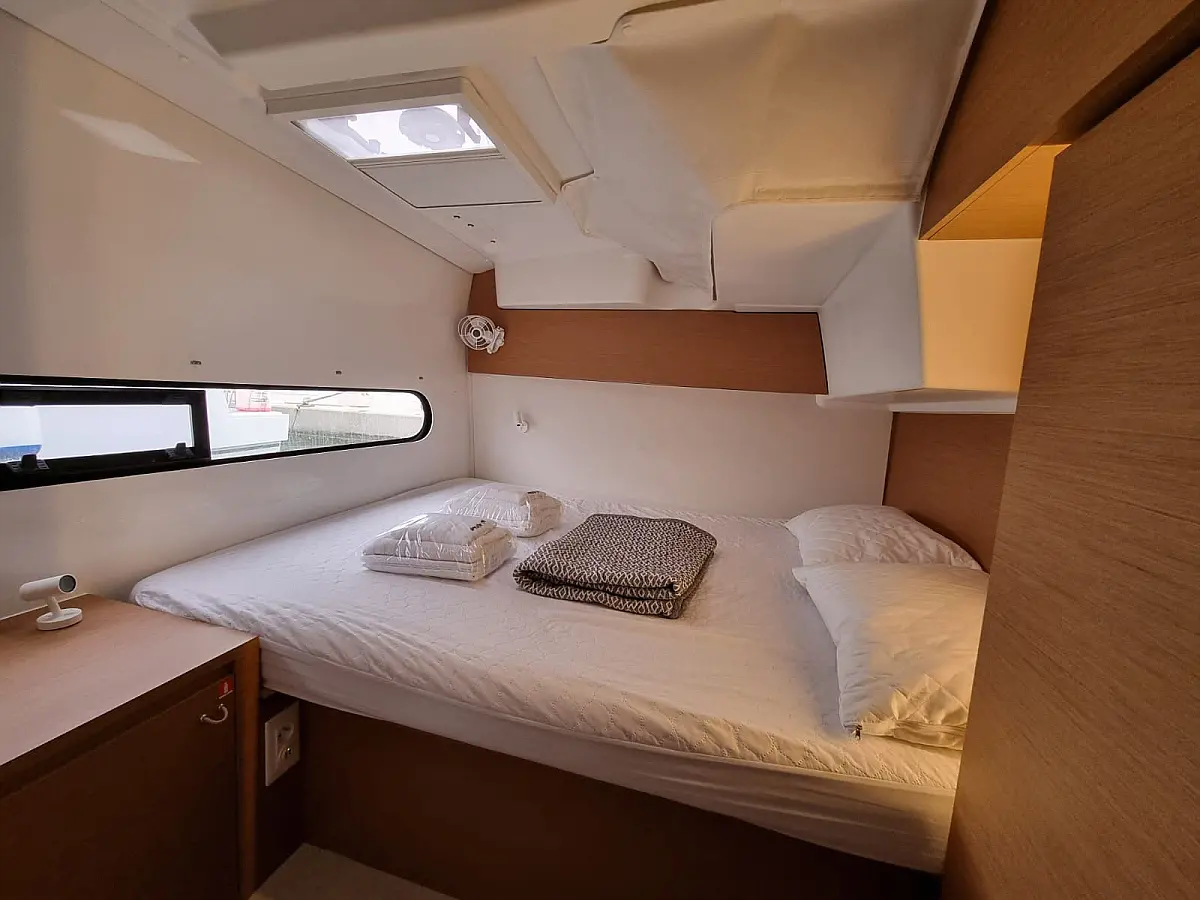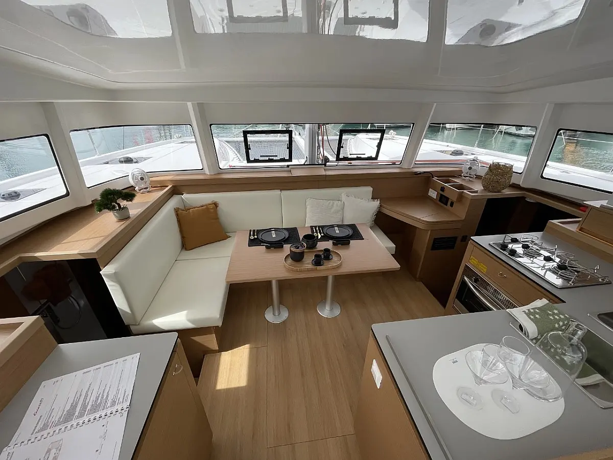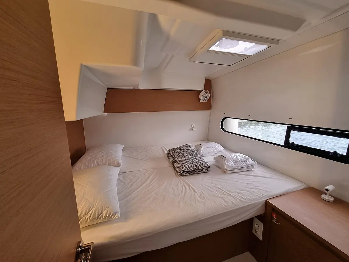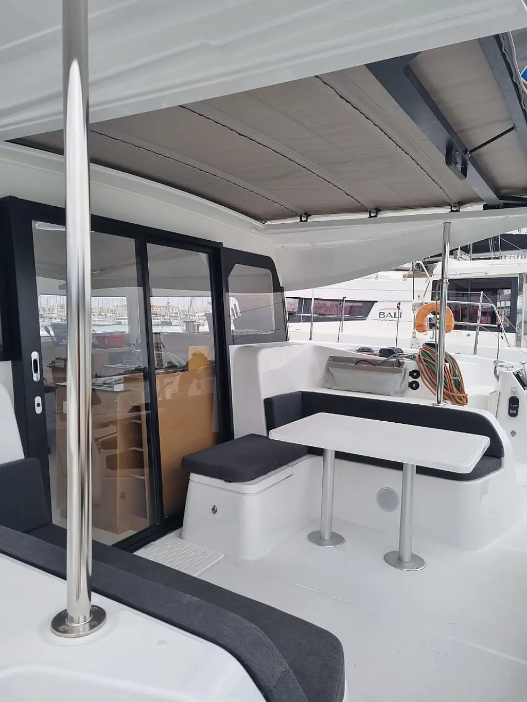 Watermaker, Generator, Falownik, Klimat, Ekspres do kawy, WC elektryczne, Ponton, Kostkarka do lodu, Lodówka, Owiewka na kabinie, Bimini (daszek nad kokpitem)