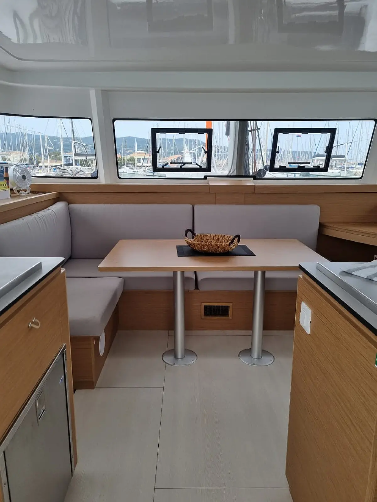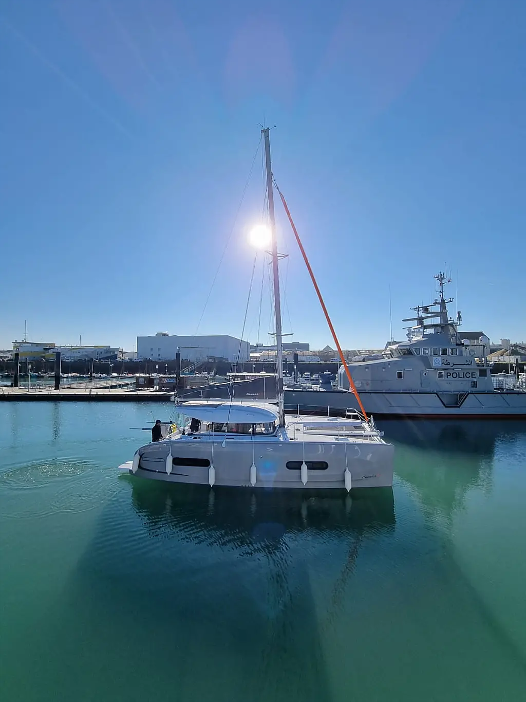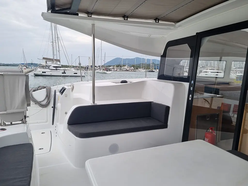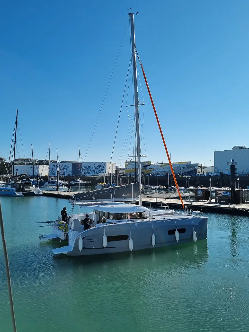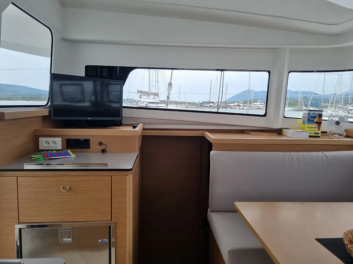Watermaker, Generator, Falownik, Klimat, Ekspres do kawy, WC elektryczne, Ponton, Kostkarka do lodu, Lodówka, Owiewka na kabinie, Bimini (daszek nad kokpitem)