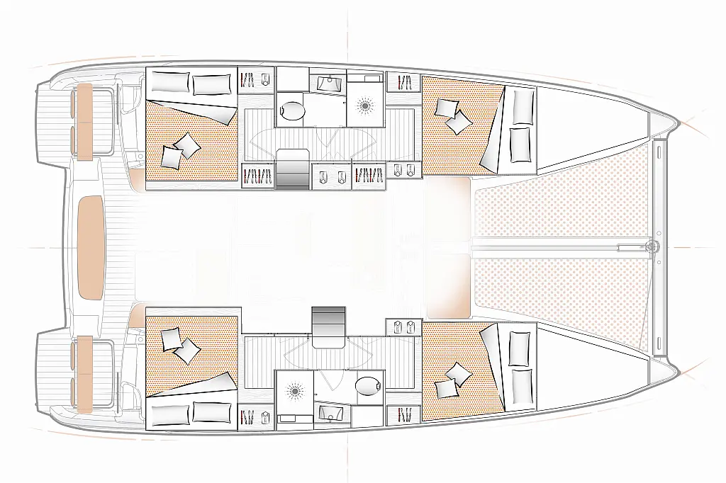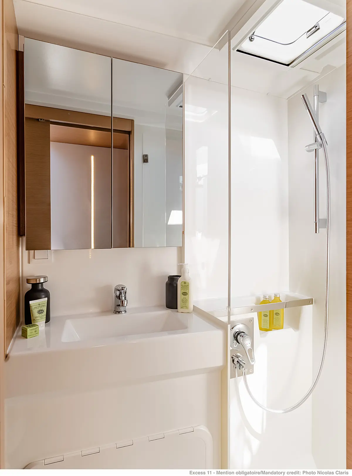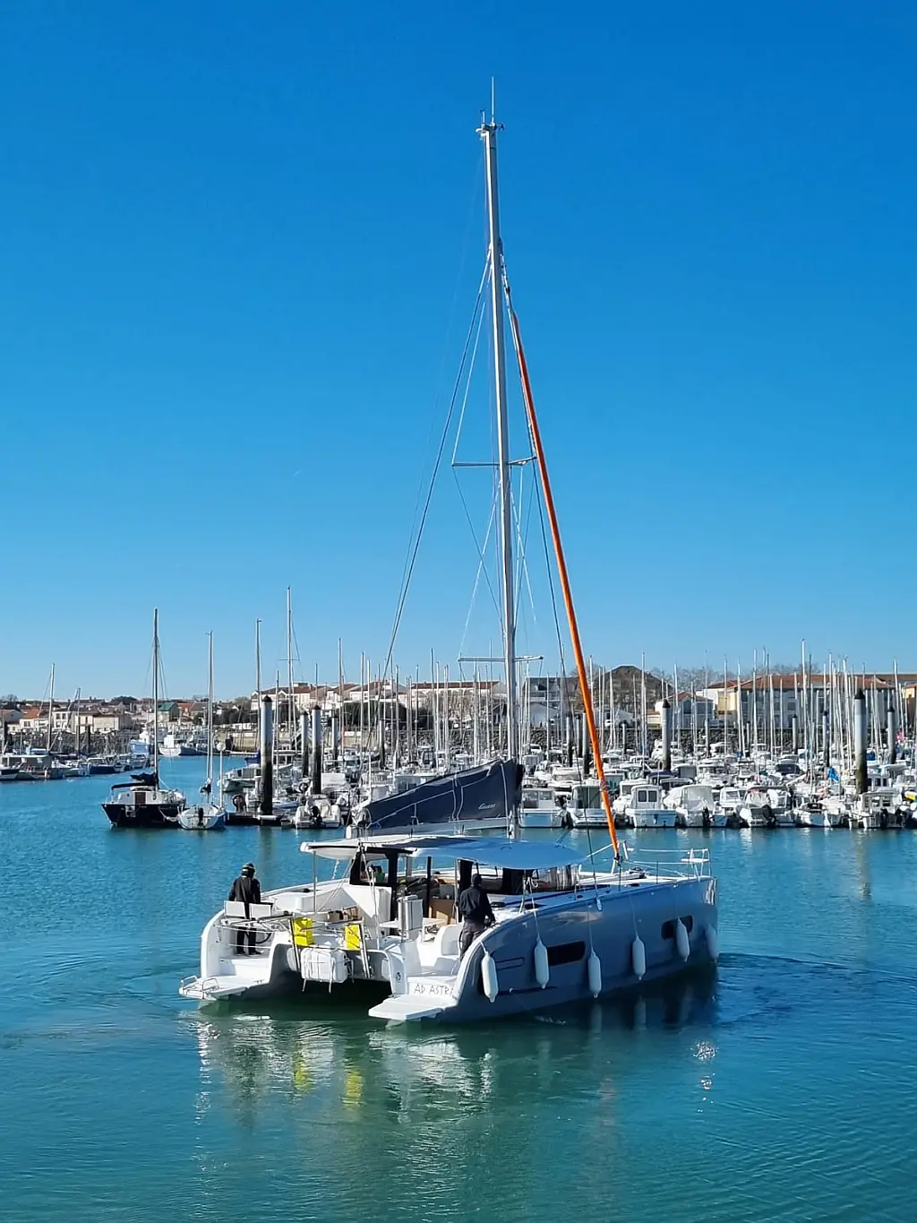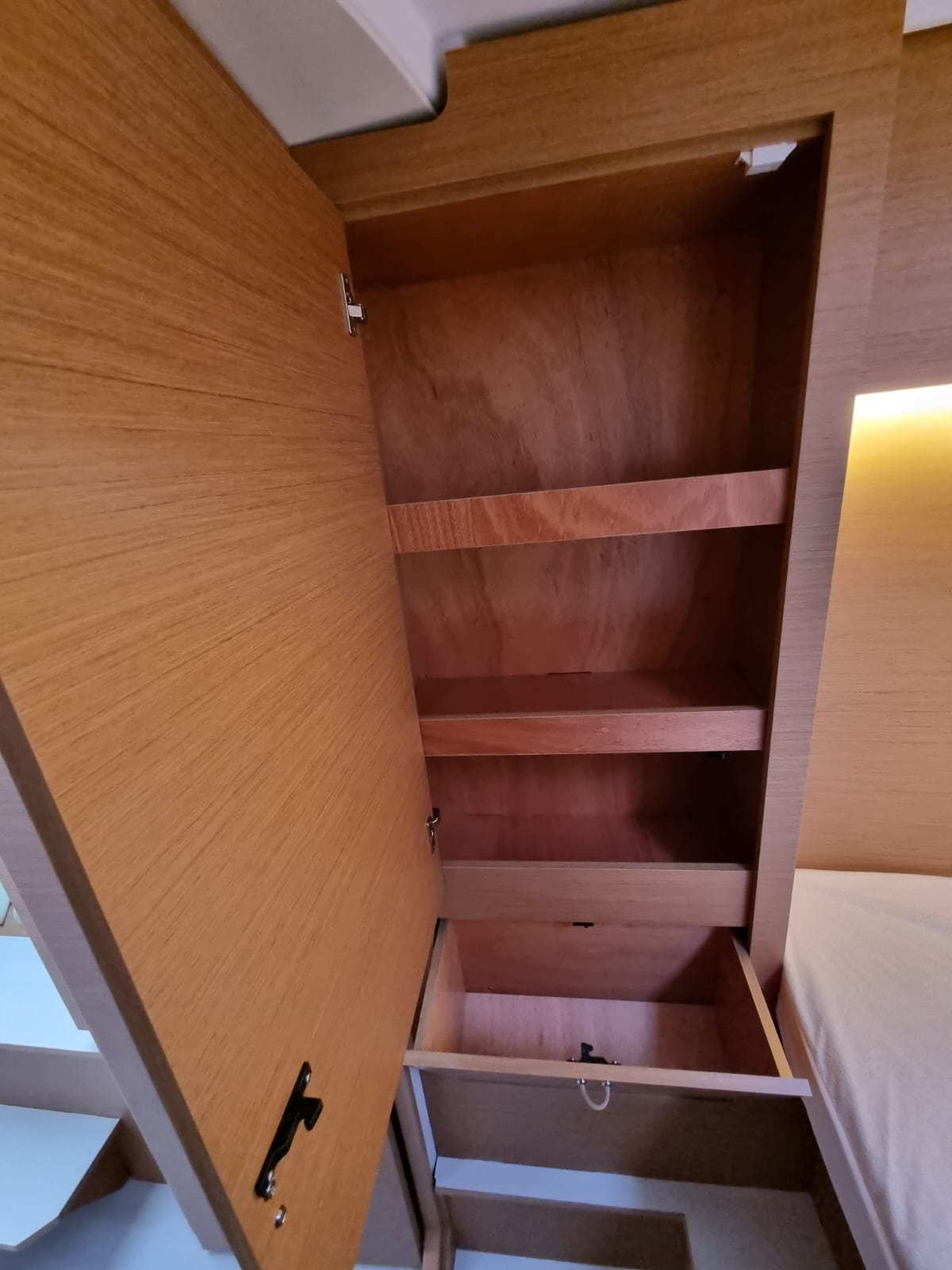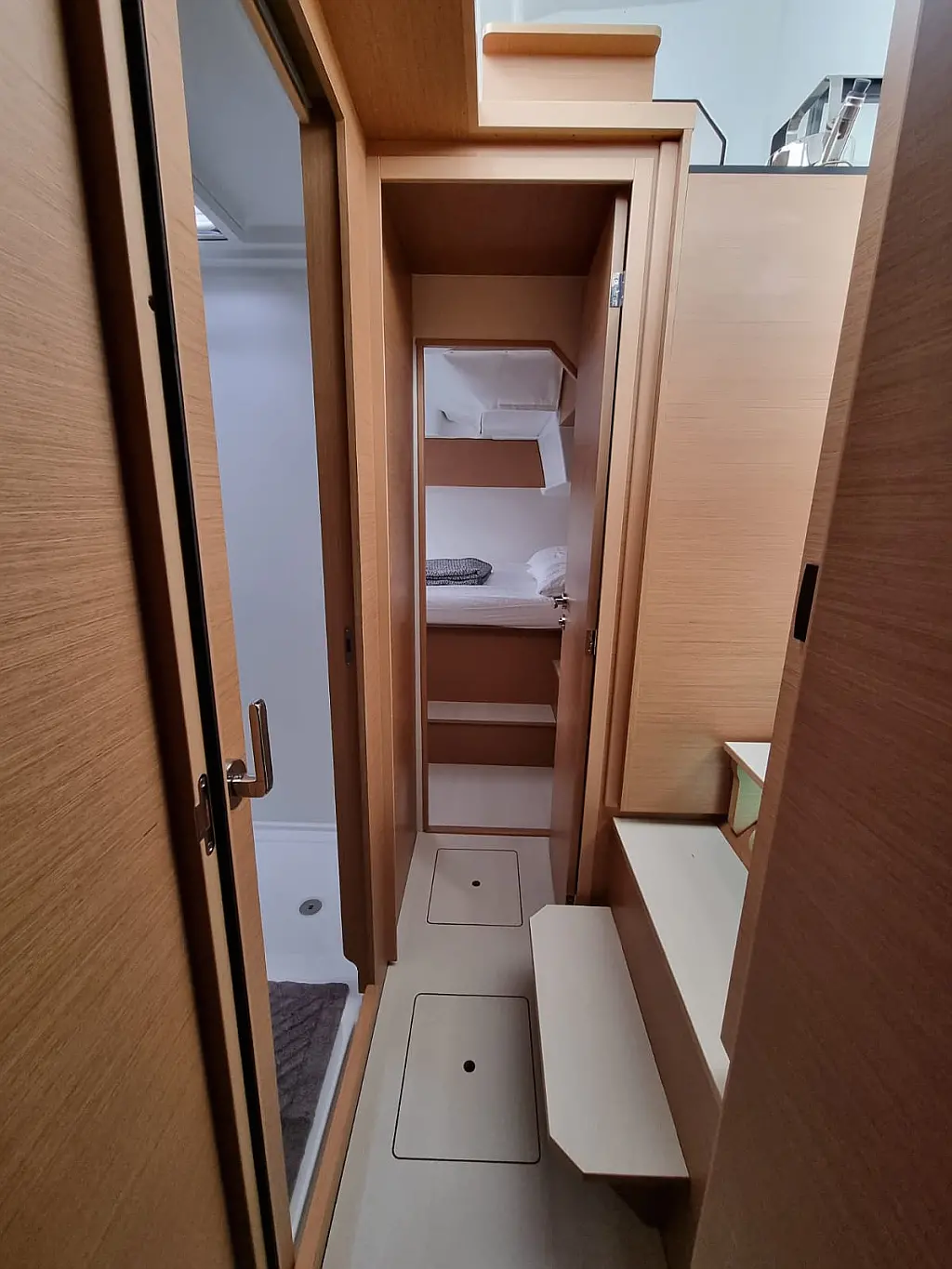 Watermaker, Generator, Falownik, Klimat, Ekspres do kawy, WC elektryczne, Ponton, Kostkarka do lodu, Lodówka, Owiewka na kabinie, Bimini (daszek nad kokpitem)