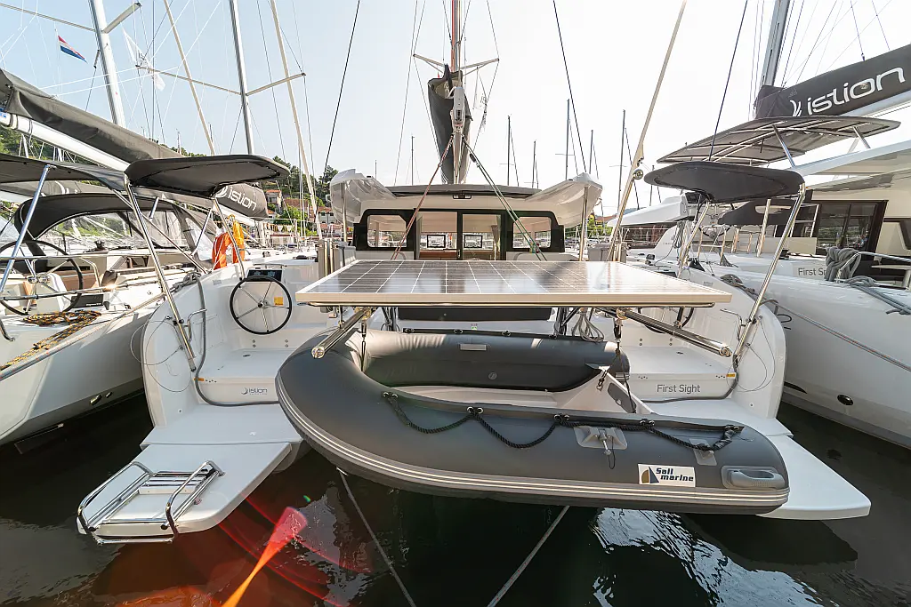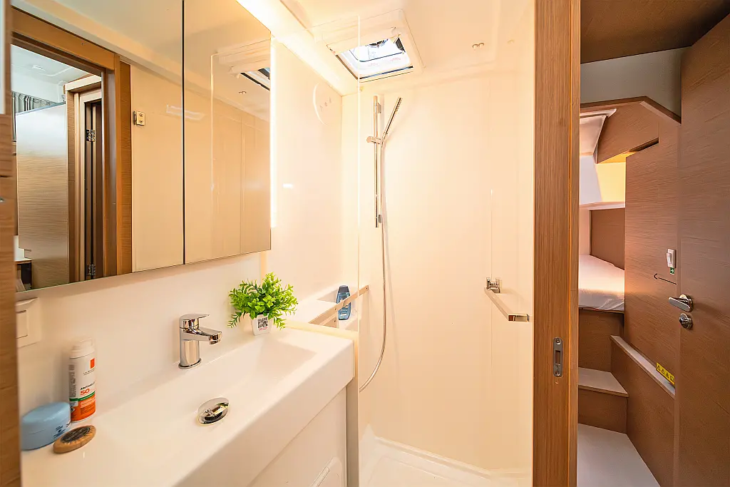 poduszka kokpitu, Bimini (daszek nad kokpitem), Wi-Fi i Internet, Zbiornik nieczystości, Ponton, Silnik do pontonu, WC elektryczne, Głośniki w kokpicie, Panel Słoneczny, Lodówka