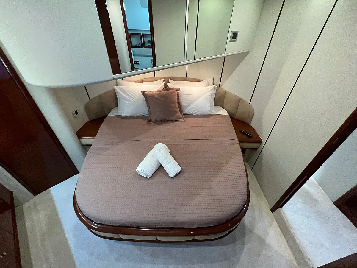 2x530 hp Volvo Penta. Consumption: 180 L/hour, 22mph cruising speed.