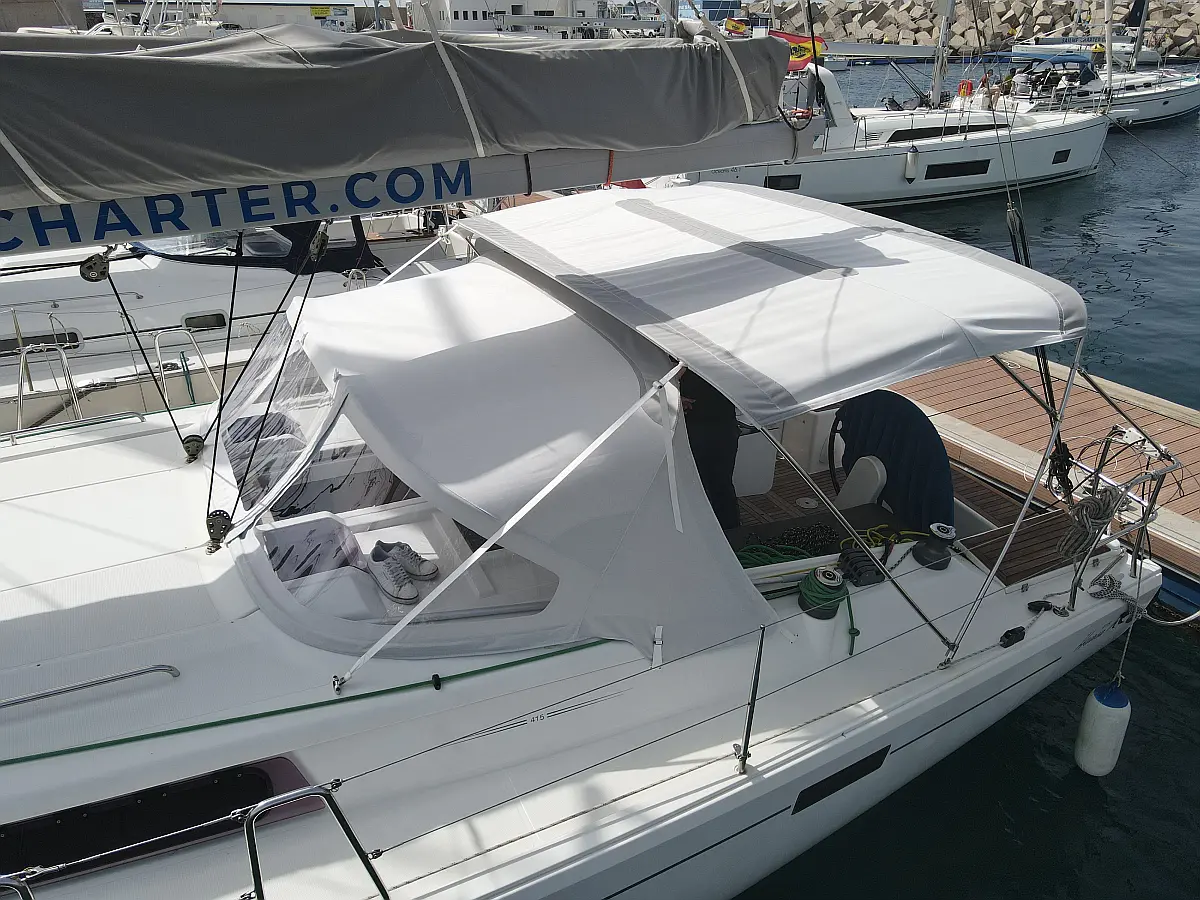 Ponton, Owiewka na kabinie, poduszka kokpitu, Bimini (daszek nad kokpitem)