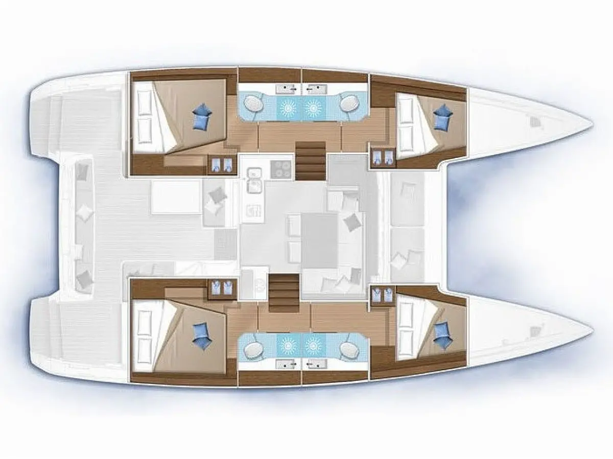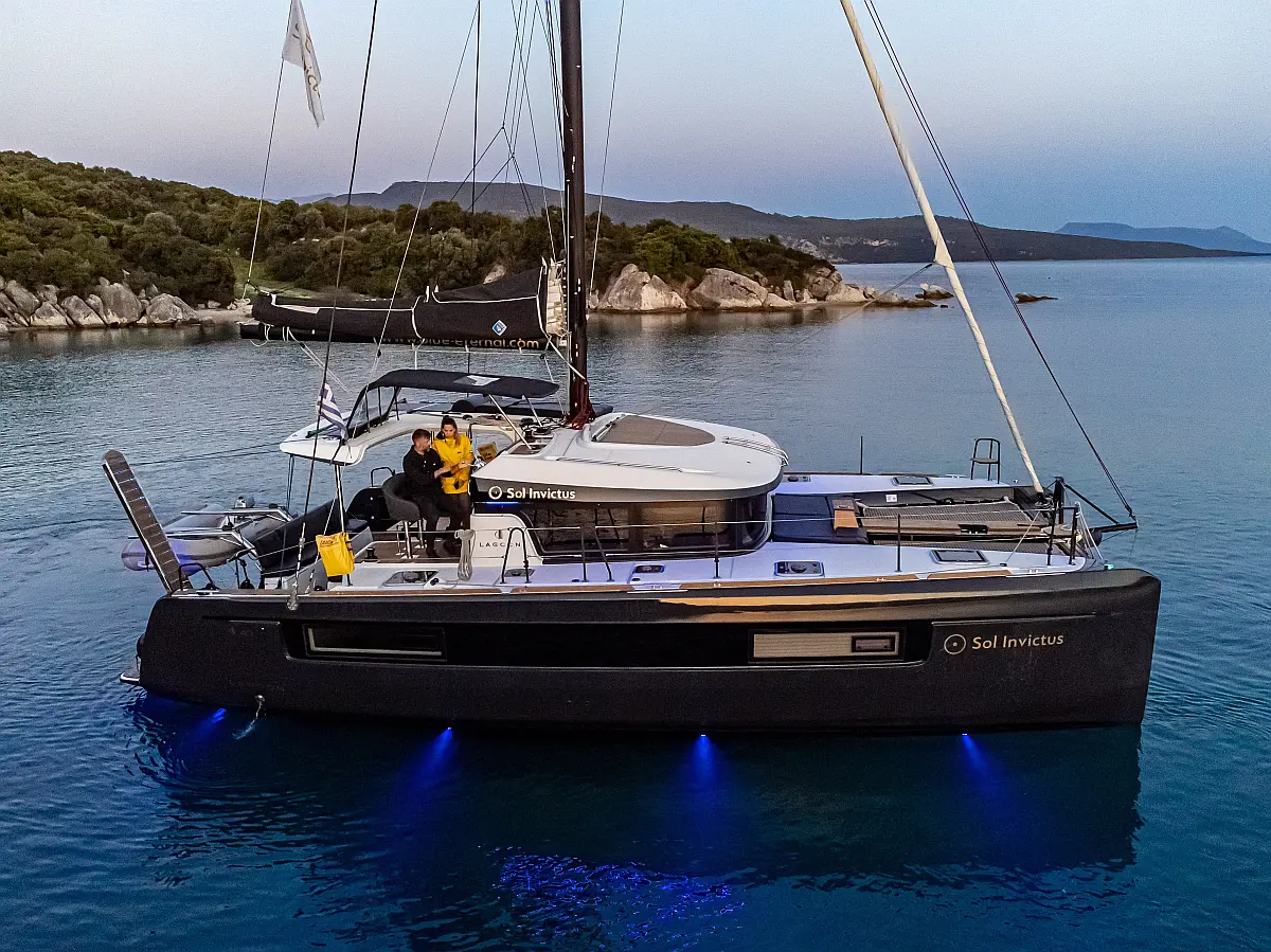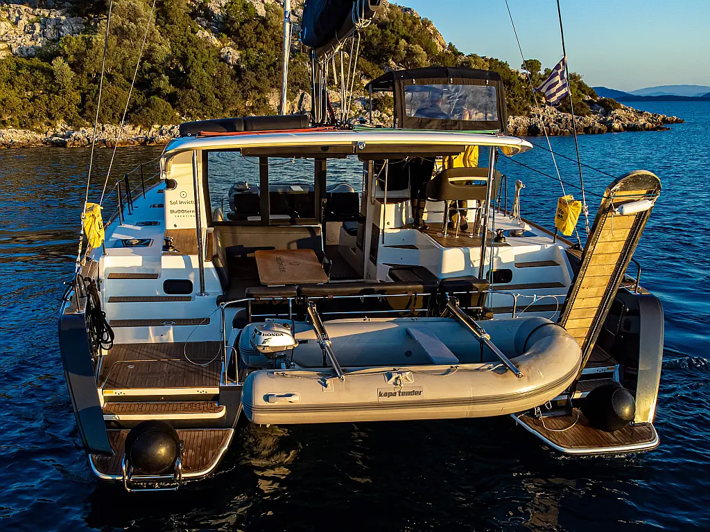 Lodówka, Klimat, Bimini (daszek nad kokpitem), poduszka kokpitu, Głośniki w kokpicie, Ponton, Ekspres do kawy, WC elektryczne, Generator, Ogrzewanie, Zbiornik nieczystości, Falownik, Silnik do pontonu, Teak Cockpit, Wi-Fi i Internet