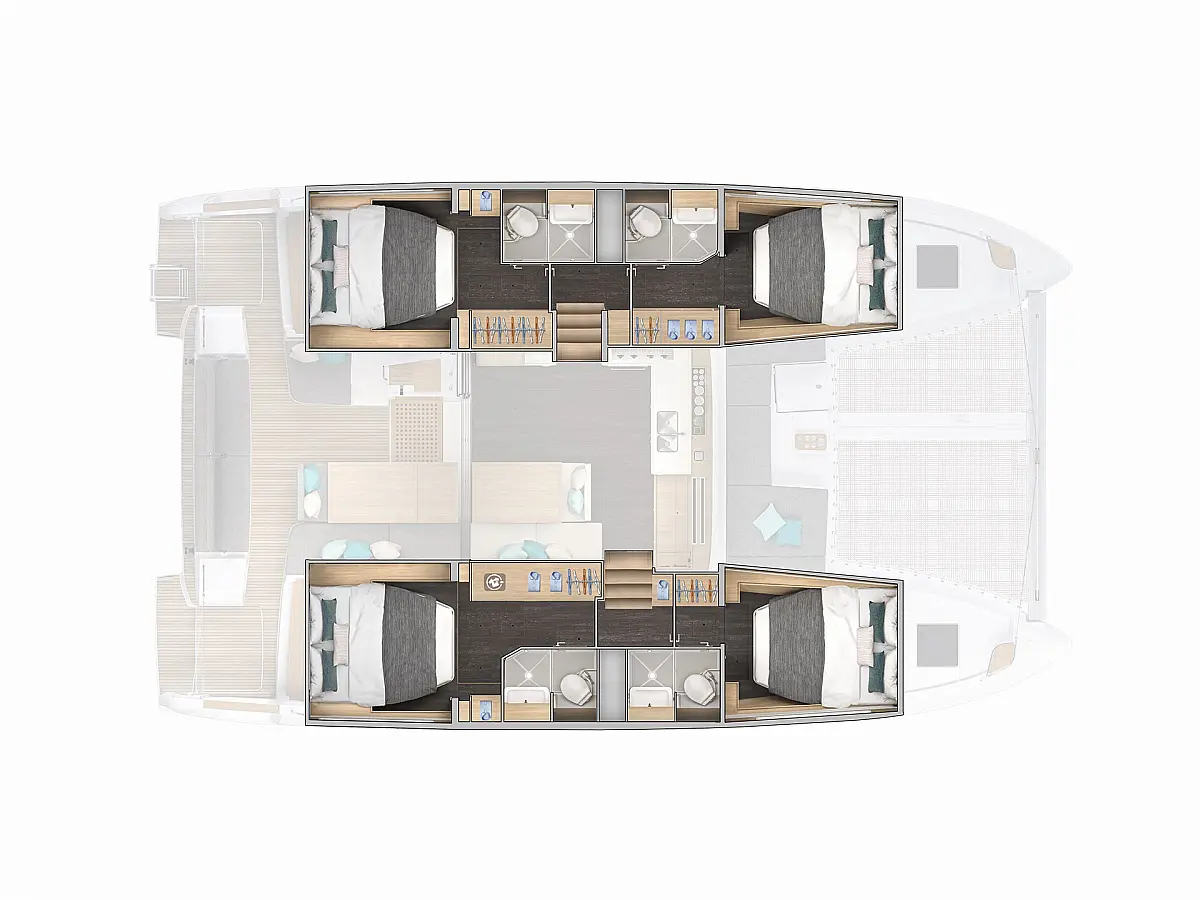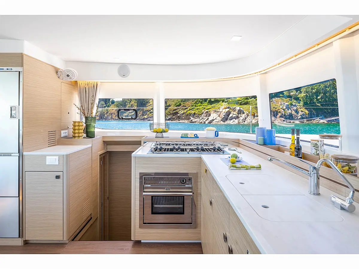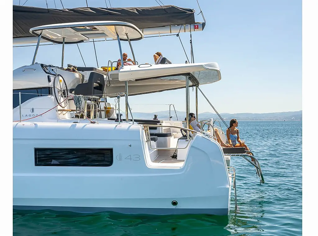 Ponton, Klimat, Lodówka, Panel Słoneczny, Bimini (daszek nad kokpitem), Kabestany elektryczne, WC elektryczne, Watermaker