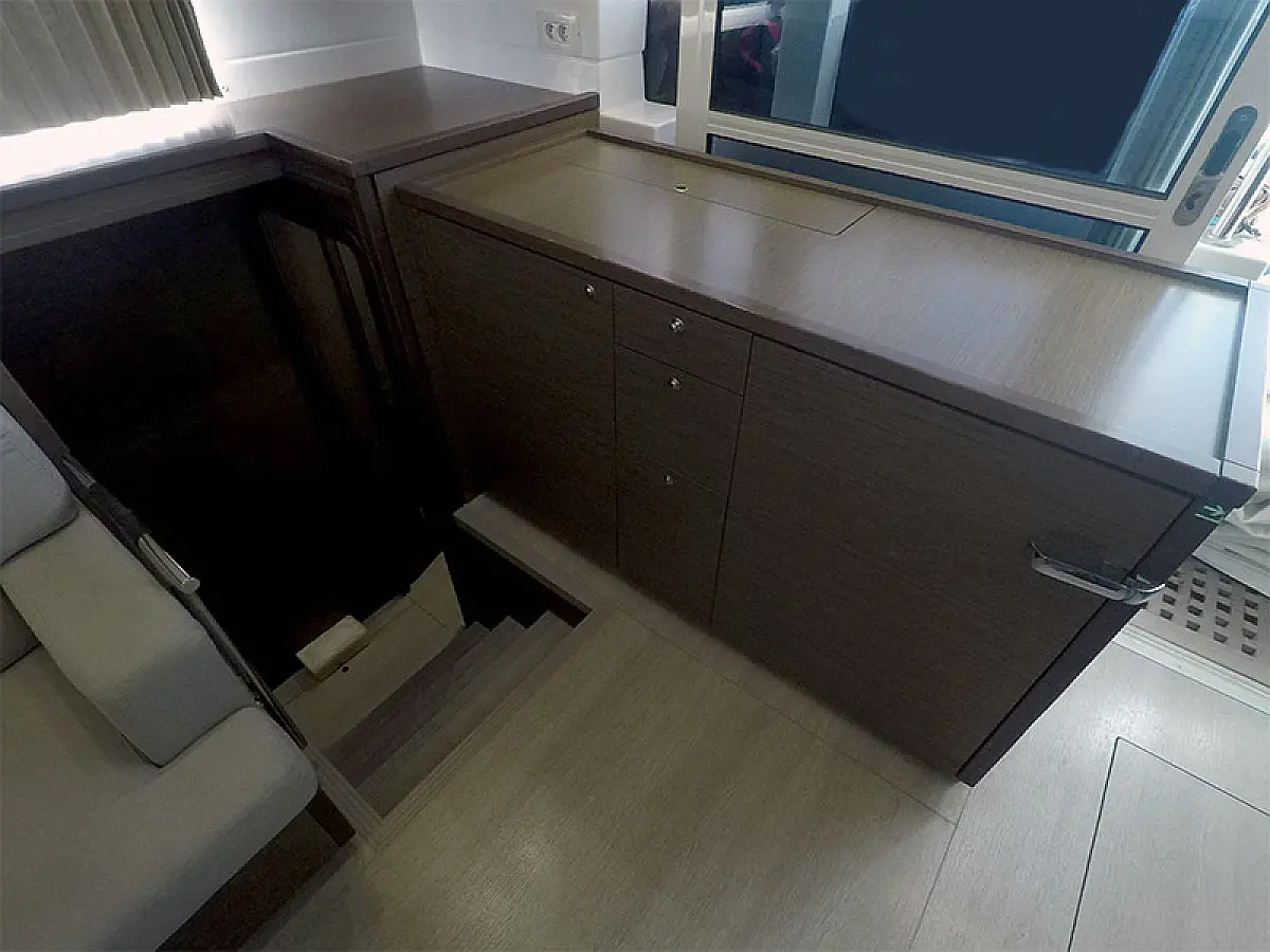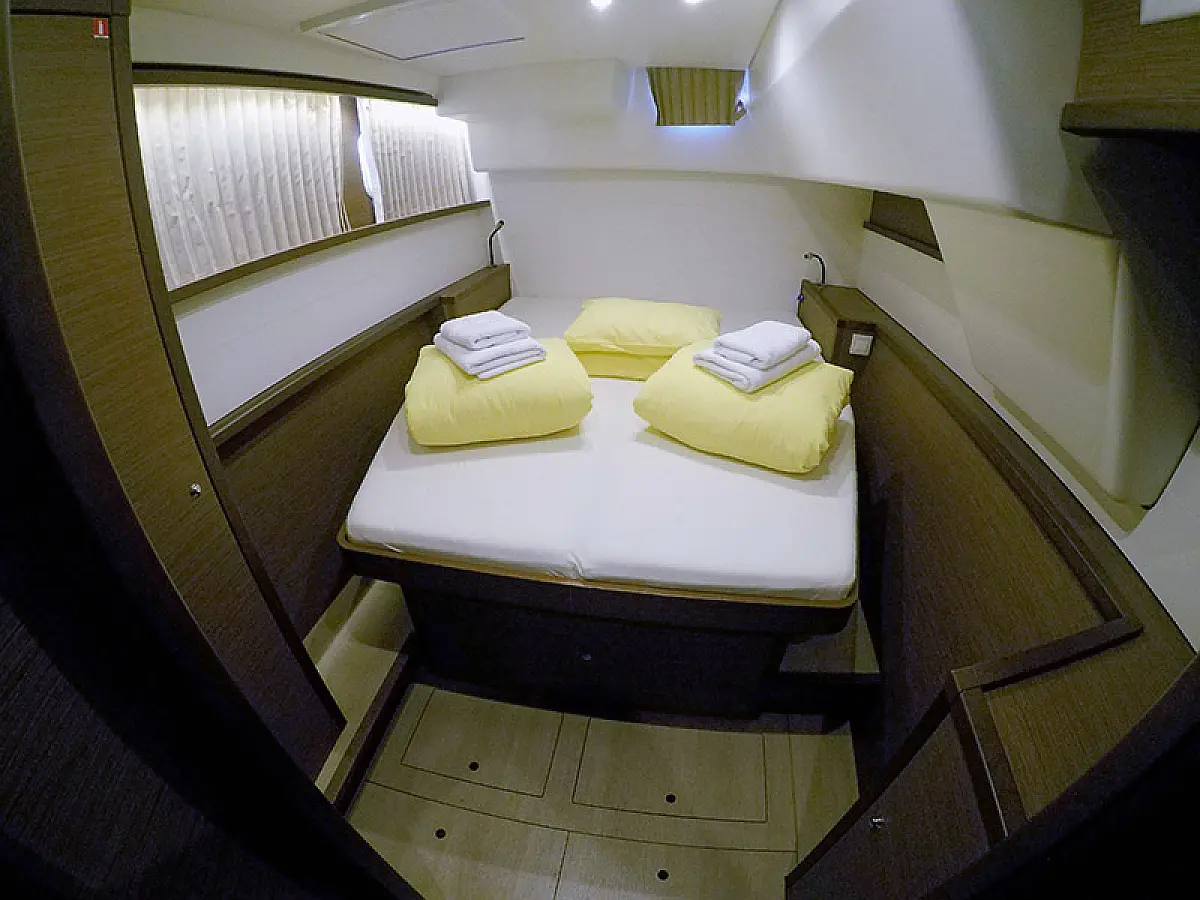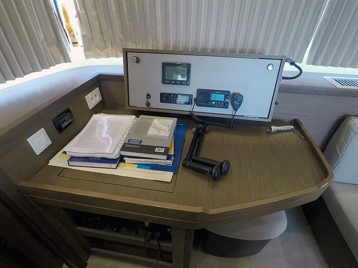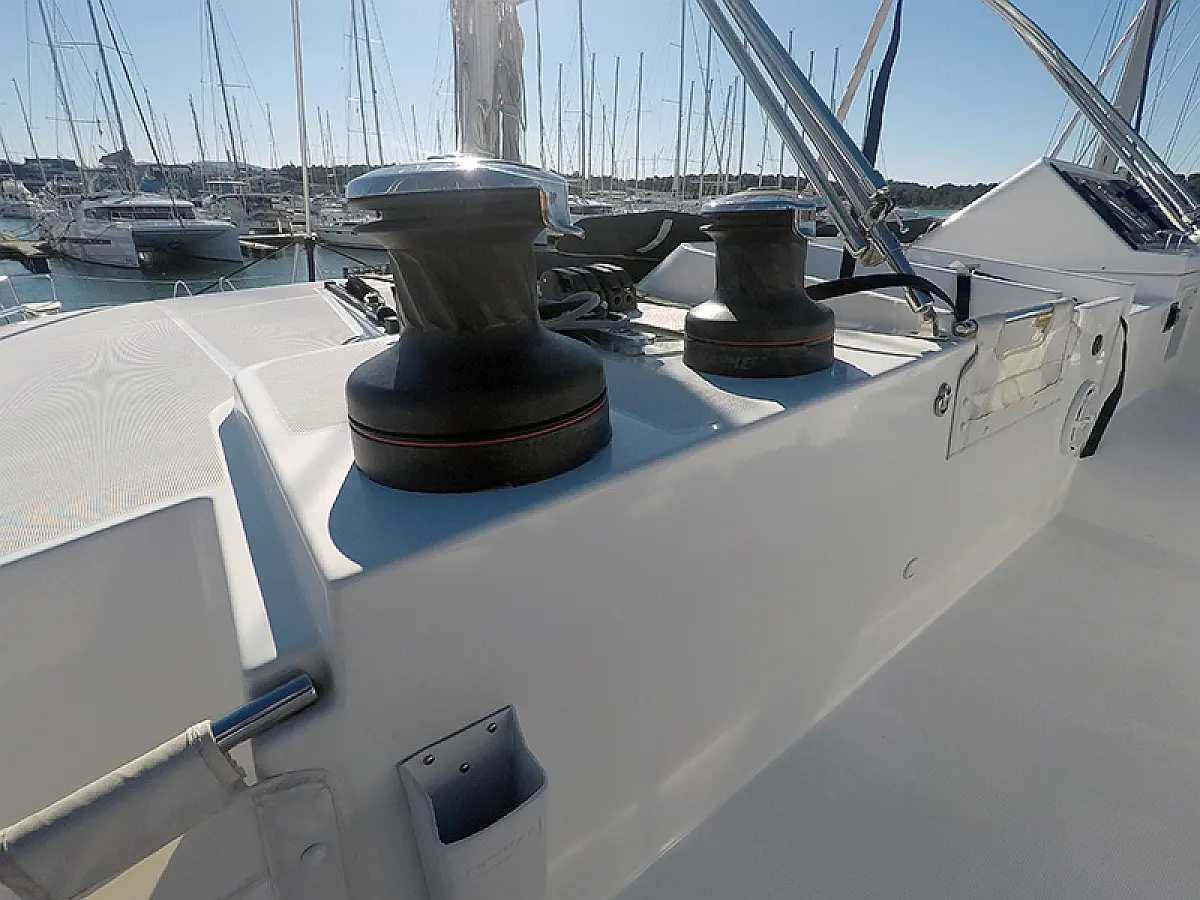 Generator, Ogrzewanie, Watermaker, Klimat, Lodówka, Bimini (daszek nad kokpitem), poduszka kokpitu, Silnik do pontonu, Ponton, Wi-Fi i Internet