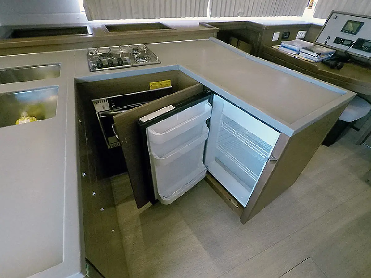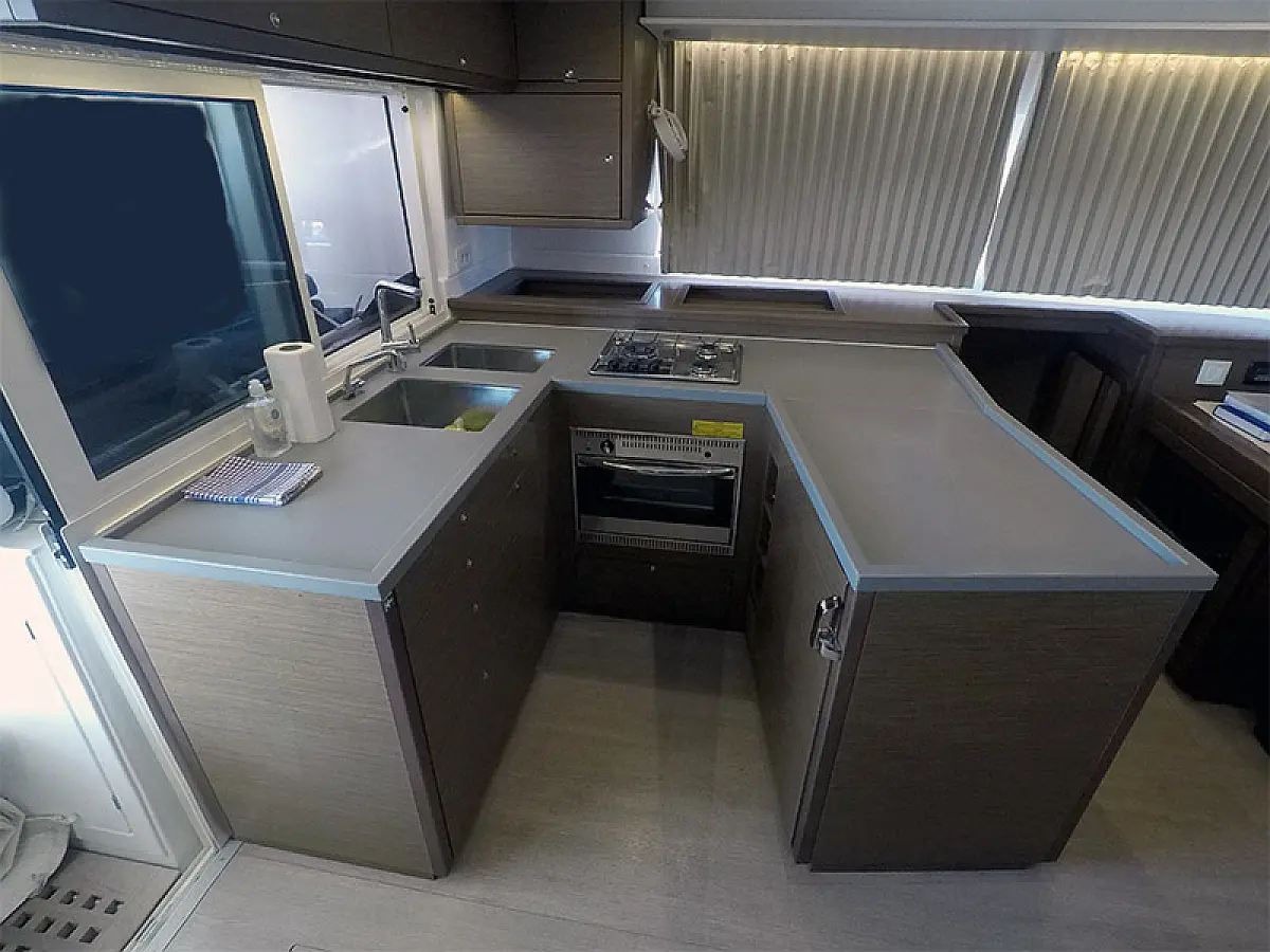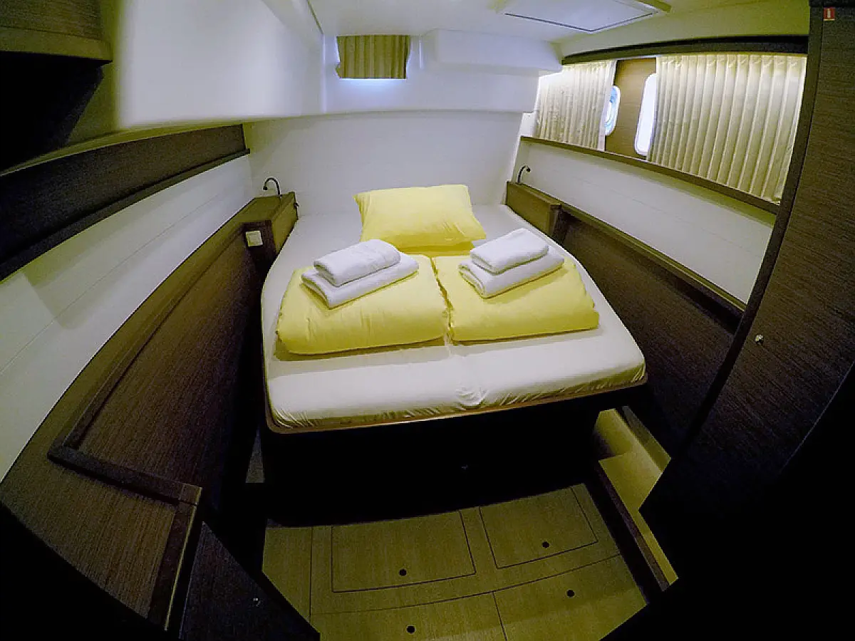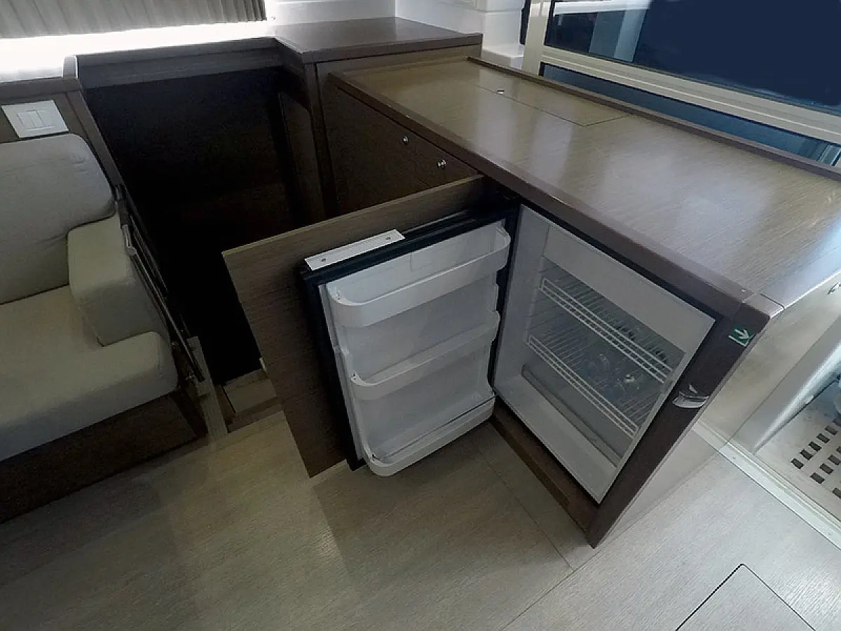 Generator, Ogrzewanie, Watermaker, Klimat, Lodówka, Bimini (daszek nad kokpitem), poduszka kokpitu, Silnik do pontonu, Ponton, Wi-Fi i Internet