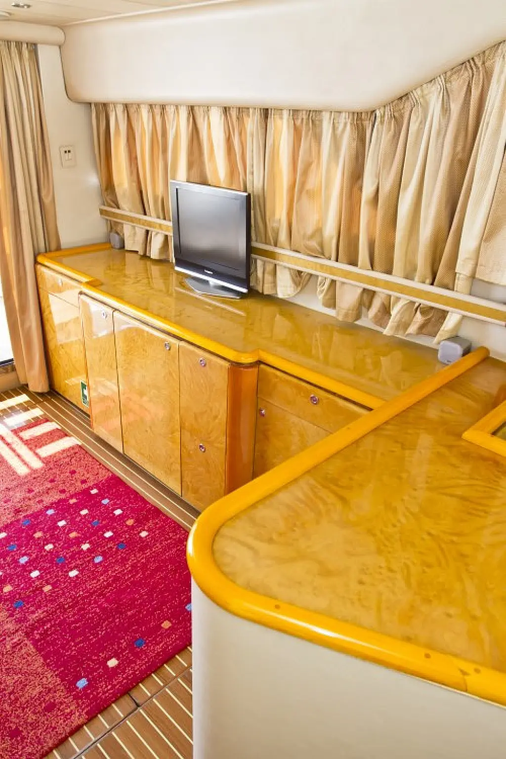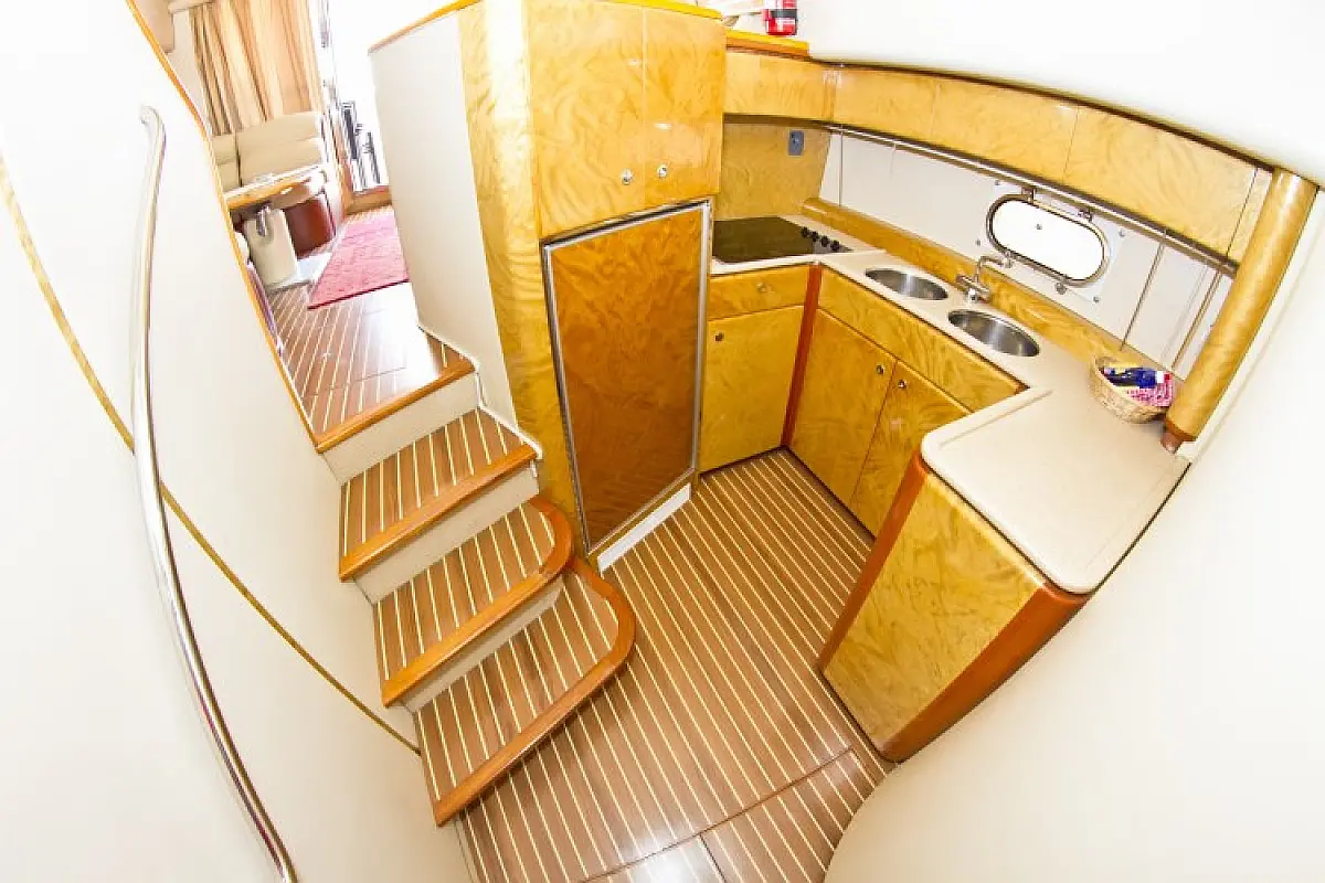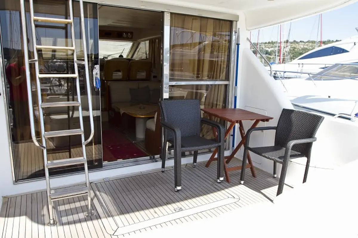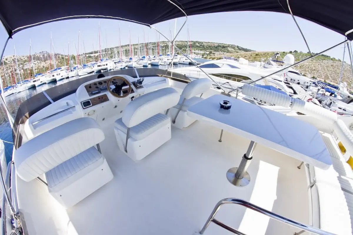Trap hydrauliczny, Lodówka, Wi-Fi i Internet, Flybridge, Teak Cockpit, Ogrzewanie, Ponton, Ekspres do kawy